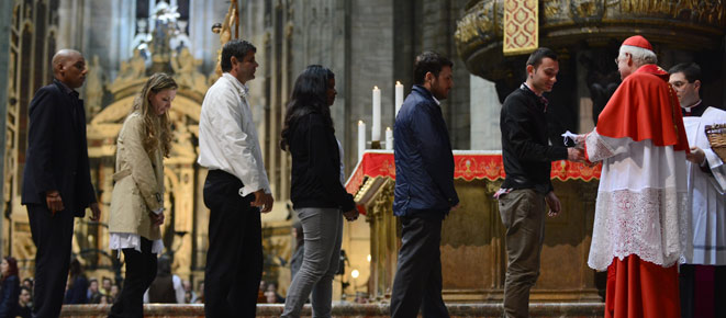 «Abbiate il coraggio di vivere una vita vera»: questa l’esortazione dell’Arcivescovo alle migliaia di giovani presenti in Cattedrale con i catecumeni per la veglia di preghiera “in traditione Symboli”. Il video dell’omelia del cardinale Scola