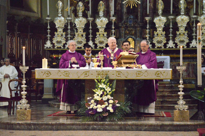 «Facciamo esperienza piena della Chiesa attraverso l’Eucaristia. La Chiesa, infatti, prima di essere il tempio di pietre, è il luogo della convocazione intorno a Gesù», dice l’Arcivescovo in apertura della sua omelia. «Se siete qui – continua, rivolgendosi direttamente ai fedeli – vuol dire che volete che il Signore sia il fulcro della vostra vita quotidiana, nei grandi rapporti costitutivi legati al matrimonio, alla famiglia, all’educazione dei figli, al lavoro; nel dolore, nella vita comune condivisa con tutti, in una società diventata plurale come la nostra, dove ognuno sappia ascoltare gli altri, in vista del bene anzitutto dei più fragili, nel contesto di crisi del lavoro che morde specie i più giovani. Non c’e gesto più importante che il Vescovo possa compiere che celebrare insieme l’Eucaristia. La nostra vita cristiana si rinnova nel campo che è il mondo, come l’oratorio, che ho appena visitato e benedetto, ci insegna».