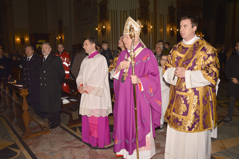 Infine, il pomeriggio di questa visita – quasi una Visita pastorale, la definisce l’Arcivescovo stesso poco dopo – si conclude con l’atto più importante, l’Eucaristia, presieduta nella basilica dei Santi Siro e Materno, gremita, con il sindaco Roberto Corti e le autorità civili e militari in prima fila e con tanta gente che resta in piedi.