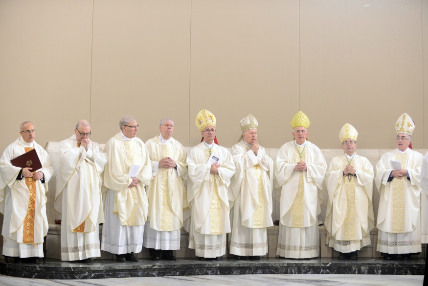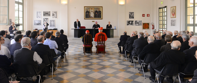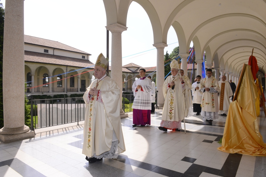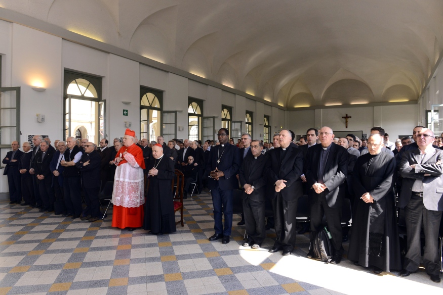 Nella Basilica interna al Seminario, consacrata proprio il 12 maggio dal cardinale Schuster, durante l’inaugurazione del nuovissimo edificio, il cardinale Scola presiede l’Eucaristia. Accanto a lui, l’Arcivescovo emerito e nove Vescovi, tra cui uno proveniente dal Niger.