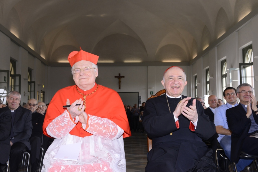 E il pensiero torna a quegli «anni di grazia trascorsi in Seminario», così chiamati da monsignor Coletti; a maestri come il Beato Montini, «esempio insuperabile» per monsignor Corti; al decreto conciliare Presbyterorum Ordinis, che ha nel titolo il plurale, non a caso, perché «occorre parlare di presbiterio e non di presbitero»; al Seminario «come luogo di relazioni vive, per ognuno di noi “casa mia”», per usare ancora le parole di monsignor Coletti, anche lui festeggiato nei suoi cinquant’anni di Messa.
