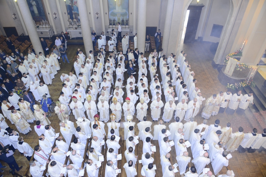 E, infine, un richiamo che si fa indicazione precisa del Vescovo: «Preghiamo affinché questo essere presi a servizio sia compreso per intero. Preghiamo per le nostre vocazioni nate tutte dall’esempio di un prete – è doloroso osservare come, qui oggi, i sacerdoti che hanno 50 o 60 anni di Messa siano più numerosi di quelli che compiono il loro venticinquesimo – e, soprattutto, impegniamoci a creare una Comunità seminaristica liceale, che non è un altro Seminario, ma una proposta della vocazione come fatto oggettivo. La vocazione è dovuta solo allo Spirito: per questo bisogna dire pubblicamente ai giovani che se uno sente l’inclinazione a darsi interamente al Signore capisca cosa significa. La Comunità seminaristica liceale è un emblema bello per tutte le nostre comunità. Spiegate questo a conclusione delle Messe che celebrate nelle parrocchie».