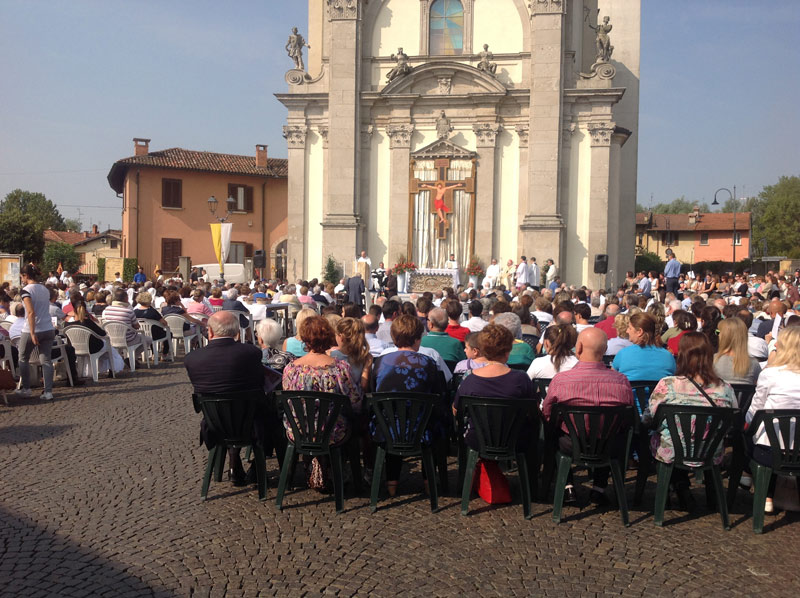 Il Cardinale è a Fara Gera d’Adda, nella nostra Diocesi, in zona Sesta e in provincia di Bergamo. La Celebrazione che presiede nella bella e assolatissima piazza tra la chiesa di Sant’Alessandro e il Municipio, vede riunito tutto il Decanato di Treviglio, che conta le due Comunità Pastorali “San Giovanni XXIII” e “Madonna delle Lacrime”.