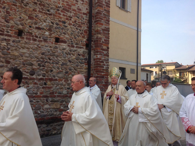 Accanto all’Arcivescovo sono infatti tutti i sacerdoti del Decanato, che il Cardinale incontra al termine della Messa, con il Decano, monsignor Buga e il Vicario di Zona, monsignor Carnevali. Molta la gente, tanti gli Alpini e i volontari di diverse Associazioni del territorio, in prima fila ben cinque sindaci – quelli di Fara, Pontirolo Nuovo, Canonica d’Adda, Treviglio e Castel Rozzone – ossia di tutti i Comuni su cui insiste il Decanato.