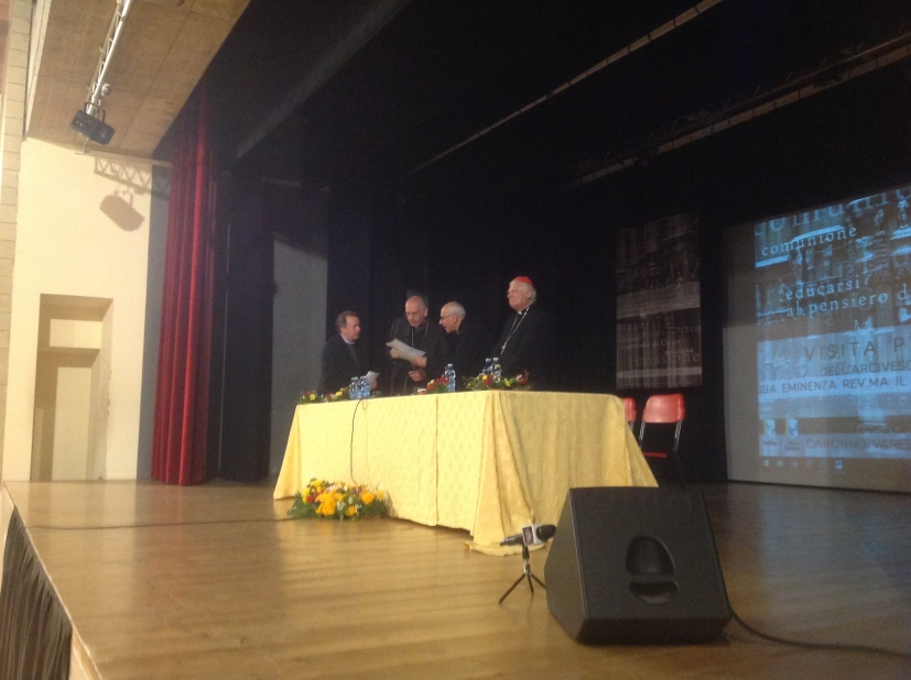 Il cardinale Scola ha compiuto la Visita pastorale feriale al Decanato di Carnago. Ai moltissimi fedeli riuniti nell’oratorio di San Vincenzo, a Caronno Varesino, ha raccomandato di vivere l’appartenenza reale e quotidiana alla comunità