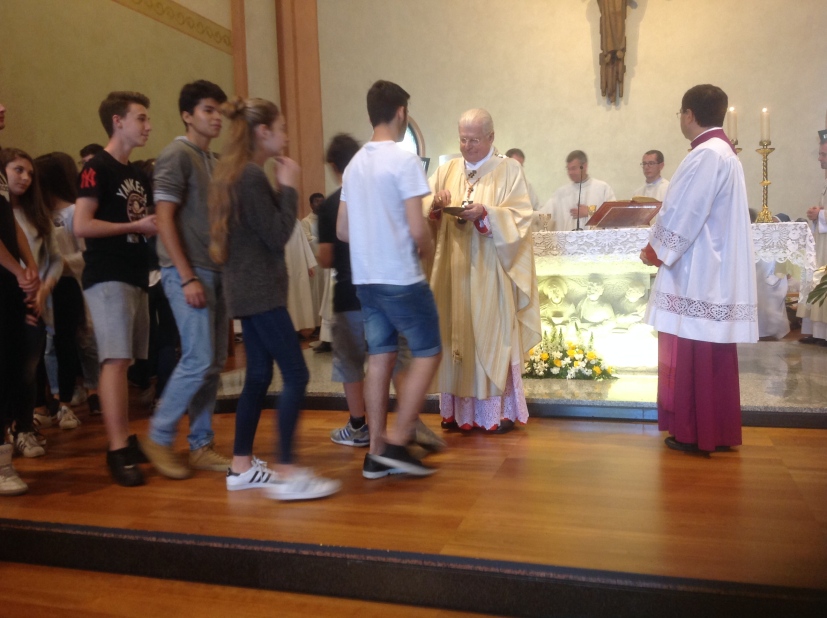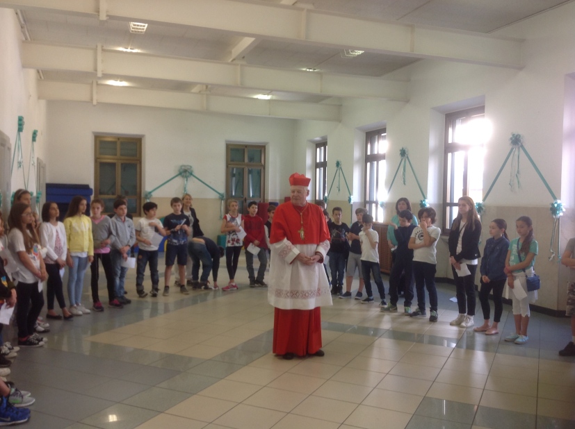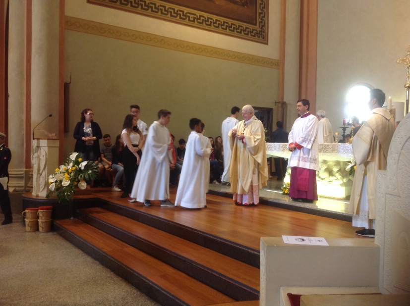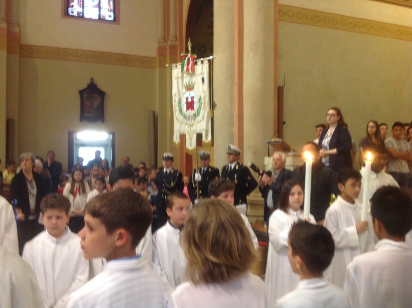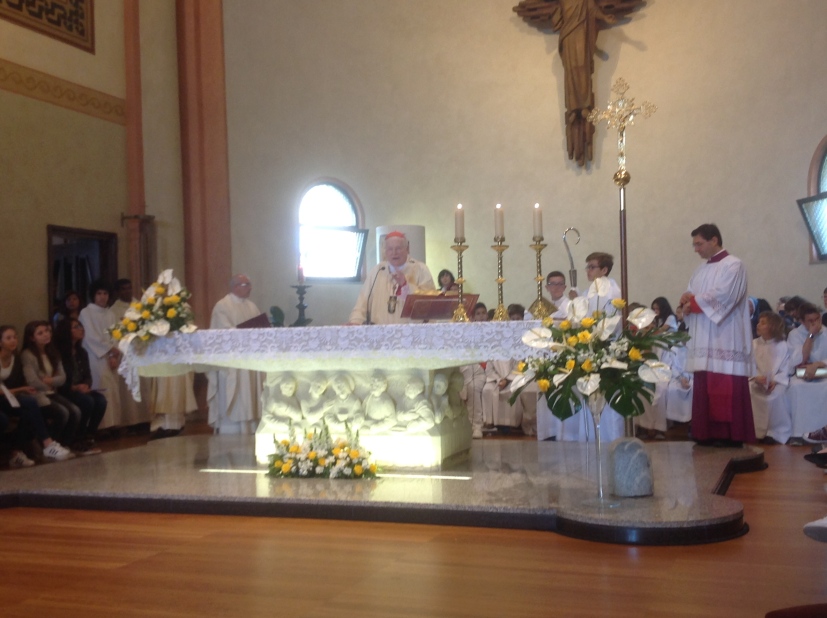 Il primo saluto all’Arcivescovo, che arriva per presiedere l’Eucaristia nella Solennità della Santissima Trinità, lo offrono, con il canto e un breve dialogo informale, i bimbi che riceveranno il sacramento della Confermazione a ottobre prossimo.