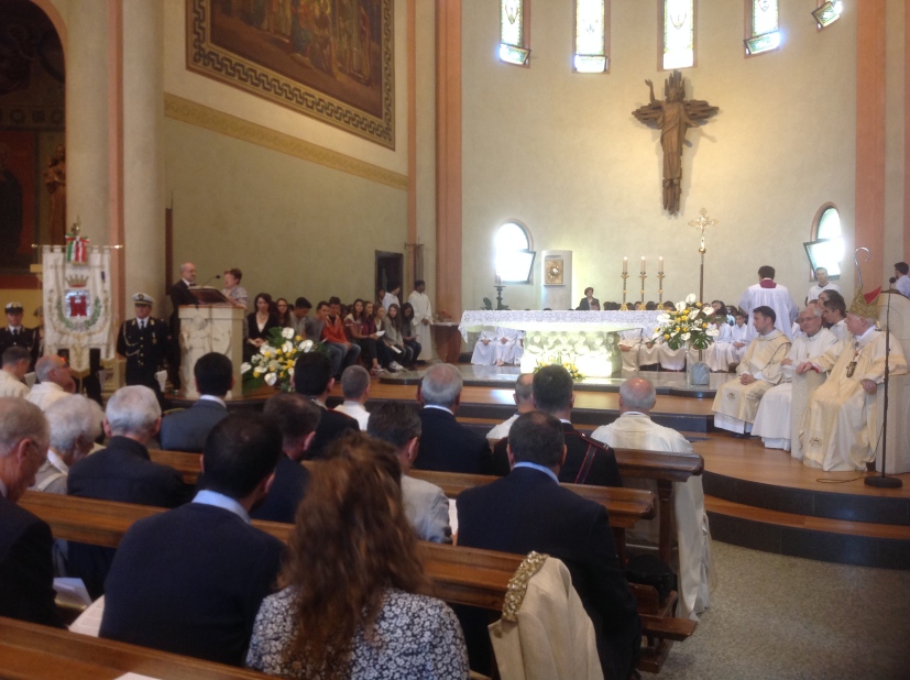 Poi, nella Chiesa gremita, con la gente in piedi fino al sagrato, si avvia, con il canto iniziale delle solennità ambrosiane – i Dodici Kyrie –, la Messa concelebrata dai sacerdoti della parrocchia, dal vicario episcopale di Zona VII, monsignor Piero Cresseri, dal decano, don Franco Motta, dal prevosto di Sesto, don Roberto Davanzo. Nelle prime file ci sono il sindaco, Monica Chittò – non manca ai piedi dell’altare il Gonfalone della città –, le autorità militari e civili, i rappresentanti di tante Associazioni e realtà sestesi. «Grazie per questo momento che abbiamo lungamente atteso e preparato nella gioia, grati a coloro che con fede, speranza e carità, hanno voluto questa chiesa cento anni fa. Anche noi vogliamo essere uomini e donne di profezia», dice il parroco don Leone Nuzzolese.