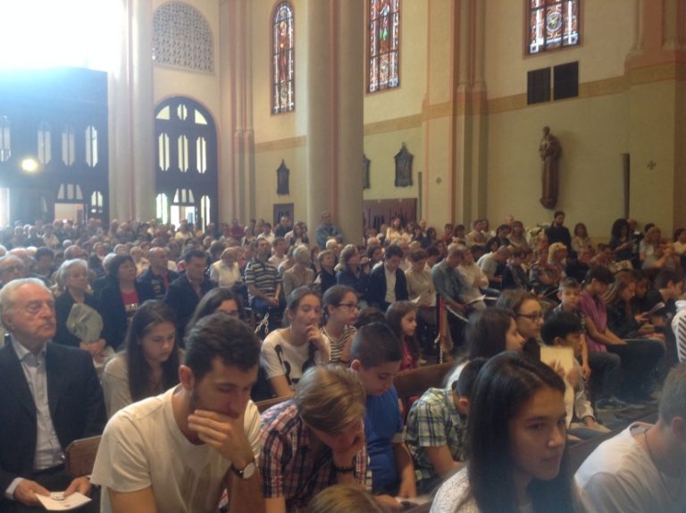 «È molto bello e fonte di grande consolazione vedervi qui così numerosi e di ogni età, per i cento anni». Cento anni di vita ecclesiale e civile, «cento anni di uomini e donne che hanno attraversato le epoche di questa grande città del lavoro, dall’epoca fordiana alla nuova fase. Speriamo che la Cittadella della Salute si realizzi, le ultime notizie non sono cattive perchè pare che la bonifica dei terreni vada avanti», riflette, in apertura dell’omelia, l’Arcivescovo, che ancora osserva. «Qualsiasi sia la condizione in cui viviamo, anche la più dura – pensiamo ai martiri cristiani e a tutti gli uomini delle religioni, a quanti hanno a cuore la giustizia –, la dignità della persona resta intoccabile da parte di qualunque potere e situazione di bisogno in cui la donna e l’uomo vengono a trovarsi».