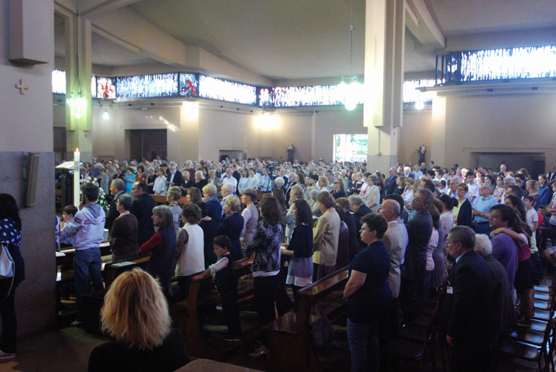 E il suo manifestarsi «è in ciascuno di noi nonostante la nostra situazione personale. Questo amore viene ed è per sempre. Assumiamoci la responsabilità di testimoniare, secondo il nostro temperamento, con franchezza e delicatezza, la bellezza di Gesù vero Dio e vero uomo. Perché tutti aspettano la salvezza, ogni uomo e ogni donna: anche coloro i quali non lo sanno o non lo dicono. Guardiamo a Gesù – è l’auspicio finale di Scola – come lo guardavano la Vergine e i discepoli nel giorno dell’ascensione che ha dato il nome alla vostra Comunità pastorale».
