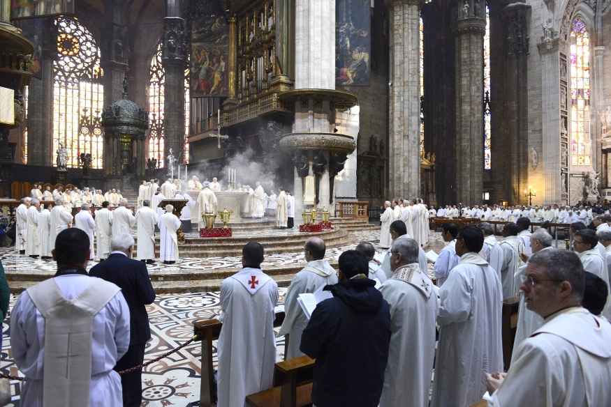 L’Arcivescovo ha concluso con un invito alla fiducia rivolto a tutti i suoi preti: «Mi capita di incontrare laici che mi dicono: “Trovo sacerdoti sfiduciati”. I tempi sono così difficili, l’Europa sta passando da un nichilismo borghese a uno scenario buio, forse tempestoso. Quale futuro ci attende? Non dobbiamo temere perché la natura della nostra vocazione è limpida e la nostra missione, che il Vangelo ci ha descritto, è semmai ancor più urgente. A condizione di donare la nostra vita a Gesù nei fratelli. E non dobbiamo dimenticare che con l’ordinazione noi l’abbiamo già donata. Questo libera da ogni angoscia, ansia o cattivo timore».