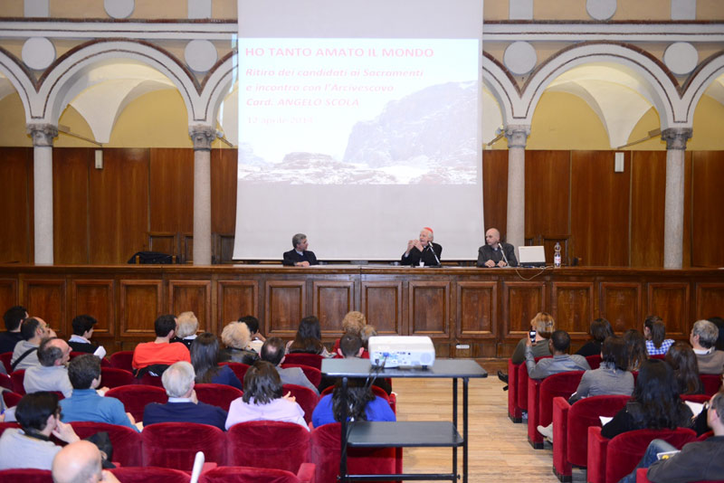E il dialogo, allora, in un’atmosfera di bella cordialità, si fa subito attento, nelle domande che in più tornate pongono dodici giovani che riceveranno nel periodo pasquale i sacramenti dell’Iniziazione cristiana. Accanto al Cardinale siedono il Vicario episcopale, monsignor Pierantonio Tremolada e don Paolo Sartor, che, come responsabile del Servizio per il Catecumenato, presenta i candidati. A otto tra loro, l’Arcivescovo laverà i piedi il prossimo Giovedì santo, gli altri quattro saranno catecumeni in età scolare.