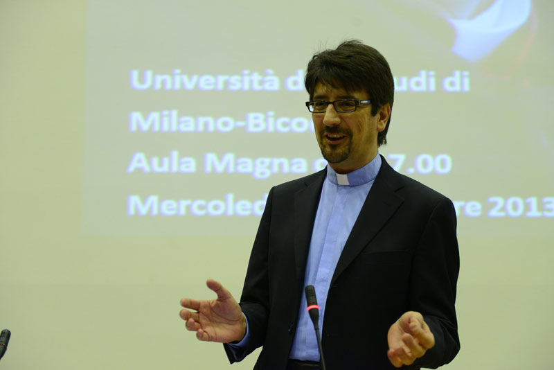 L’intervento di Scola è stato preceduto dai saluti del rettore della Bicocca, Maria Cristina Messa, di don Bortolo Uberti, cappellano dell’Università Statale e di mons. Pierantonio Tremolada, Vicario episcopale per l’evangelizzazione. Quest’ultimo ha definito l’Università come «luogo dove si coltiva il sapere e si fa cultura, si impara ad apprendere positivamente la realtà, a edificare la società. Luogo dove le generazioni scambiano il meglio di se stessi».