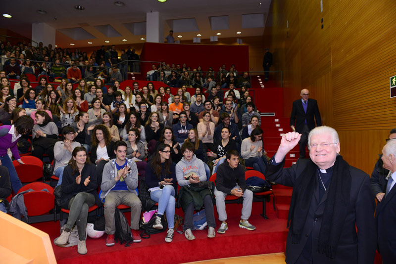 Ricordando il suo affetto per l’Università, istituzione cui ha dedicato 40 anni di insegnamento, l’arcivescovo Scola ha espresso l’auspicio che sia «una risorsa decisiva, un’occasione per la maturazione profonda della persona non limitata alla sola ricerca intellettuale e personale, ma aperta all’uomo nella sua interezza. L’umano tutto intero deve essere preso in considerazione in queste aule».