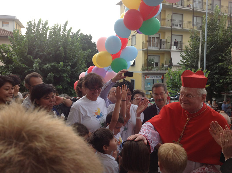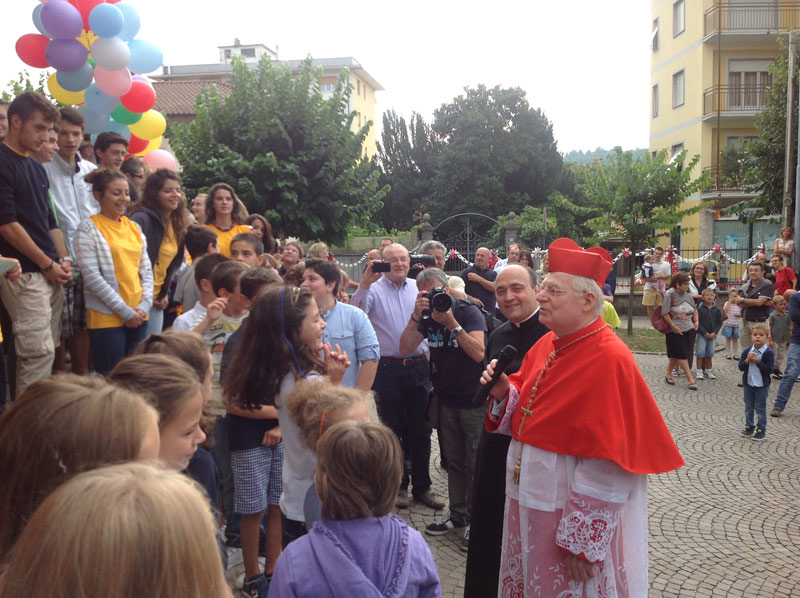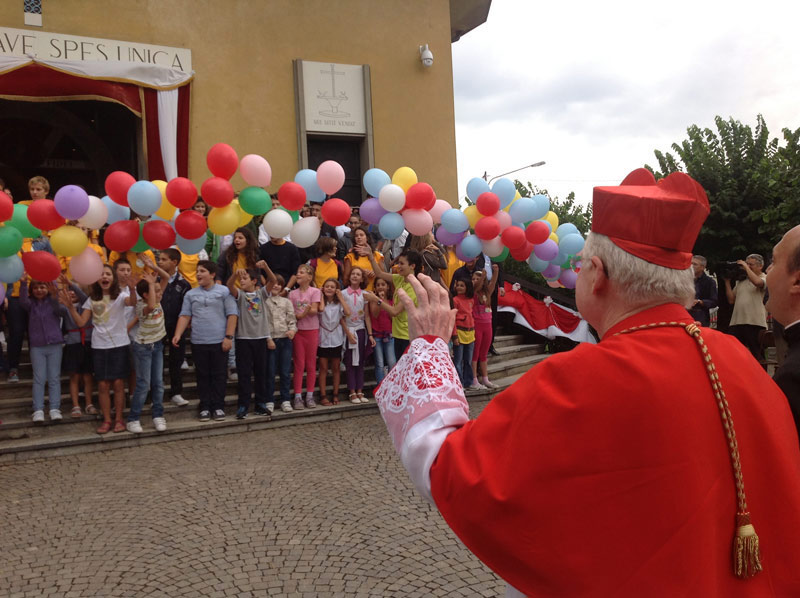 Il cielo è grigio, incerto sopra Gazzada ma, davanti alla parrocchia Santa Croce, i palloncini colorati, le magliette dei bambini e dei ragazzi, degli animatori dell’oratorio, illuminano di un grande sole il sagrato affollatissimo. È l’accoglienza per il Cardinale che, con la Celebrazione eucaristica che presiede nella Festa patronale, festeggia anche i cinquant’anni della chiesa e incontra i sacerdoti del Decanato di Azzate.