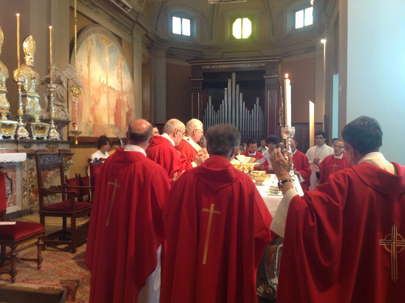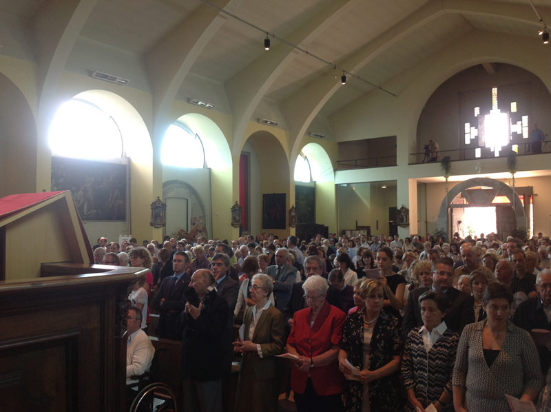 Dopo il canto solenne dei 12 Kyrie, è il parroco, don Angelo Fontana, a ricordare il cinquantennio della chiesa, consacrata da monsignor Giuseppe Schiavini il 5 settembre 1963, e il ruolo dell’Unità pastorale di Gazzada, Schianno e Lozza.