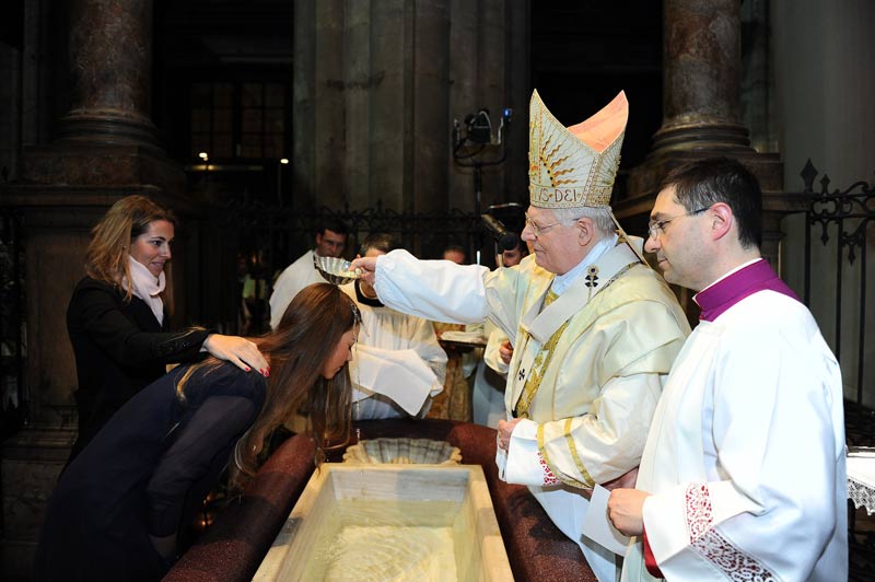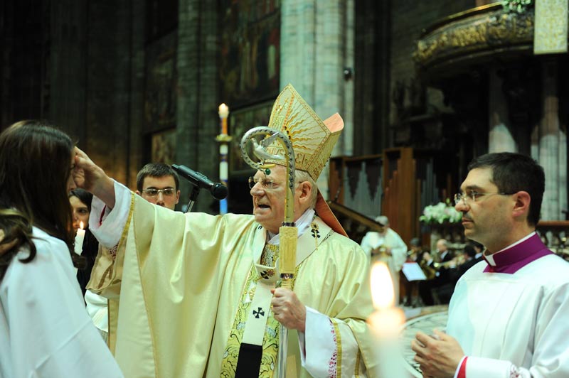 «Voi catecumeni, provenienti da varie nazioni e culture, che abbracciate da adulti la fede cristiana siete una espressione molto significativa della perenne giovinezza della chiesa, altro che parlar sempre di chiese vuote o di cristiani smemorati. Le chiese d’Europa e anche la nostra, in questa fase di rapida transizione, stanno attraversando, ce lo siamo detti più volte, un doloroso travaglio. Non di rado noi cristiani siamo perplessi, talora siamo confusi perché è debole, troppo debole la nostra fede, troppo fiacca la nostra volontà di confermare a Cristo la nostra vita, ma come a primavera sull’antico tronco spuntano nuovi germogli, così voi catecumeni siete i germogli, i segni preziosi della primavera della chiesa ambrosiana e di questo vi siamo profondamente e sommessamente grati». Con queste parole il Cardinale Angelo Scola si è rivolto ai 14 catecumeni che questa notte, durante la solenne Veglia di resurrezione, hanno ricevuto i Sacramenti dell’iniziazione cristiana: Battesimo, Cresima, Eucaristia. I catecumeni presenti provenivano da diversi angoli del mondo, vi erano infatti 8 italiani e 6 stranieri tra cui due coniugi nigeriani che insieme questa notte hanno scelto di intraprendere il percorso di fede.
