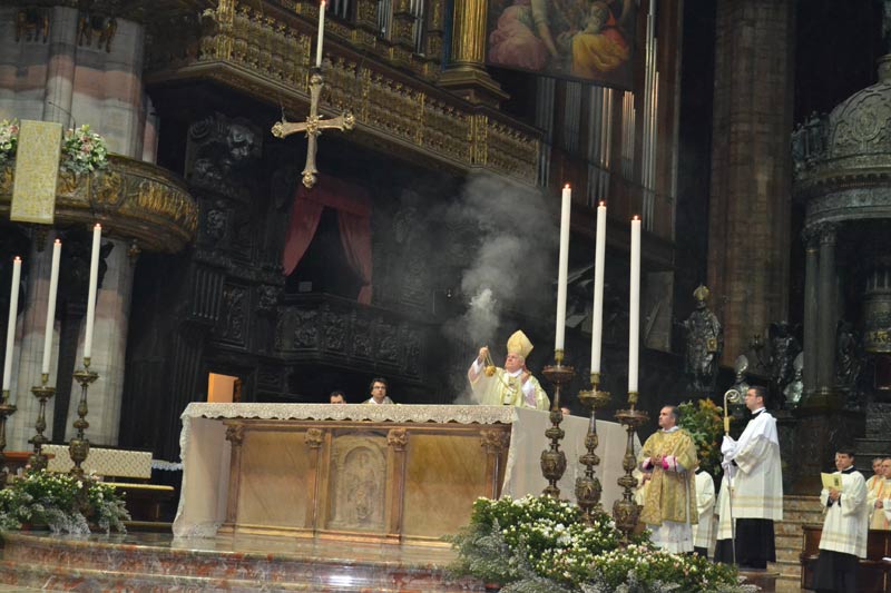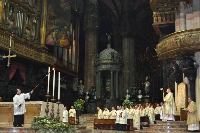 Durante la sua prima veglia Pasquale come Arcivescovo della diocesi di Milano, il Cardinal Angelo Scola ha scelto di invitare, tra le comunità parrocchiali di Milano, quella di San Pio V che aveva precedentemente incontrato in una sua visita pastorale. Il duomo era gremito di fedeli provenienti da tutta la diocesi che hanno voluto seguire la solennità più importante dell’anno liturgico, il rito della Santa Pasqua, raccolti attorno al loro nuovo Vescovo.