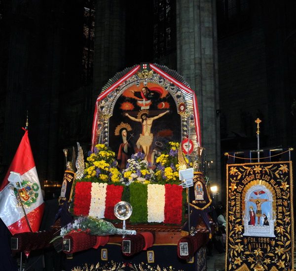 Quest’anno la scelta di Treviglio (la processione inizierà alle 11, mentre la Messa sarà celebrata alle 14) è dovuta alla concomitanza con la festa per il cinquecentenario dell’episodio miracoloso che qui diede il via alla devozione per la Madonna delle Lacrime (leggi qui). Ma già da alcuni anni la tradizionale anda, la processione con l’immagine del Señor de los Milagros, durante l’anno custodita nella chiesa di Santo Stefano a Milano, viene organizzata in una città diversa, a significare un appuntamento che si inserisce pienamente nel cammino diocesano. Fu infatti il cardinale Tettamanzi a riconoscere nel 2007 la Hermandad, ovvero la Confraternita del Signore dei Miracoli, che oggi raccoglie in un cammino di fede circa 200 peruviani.