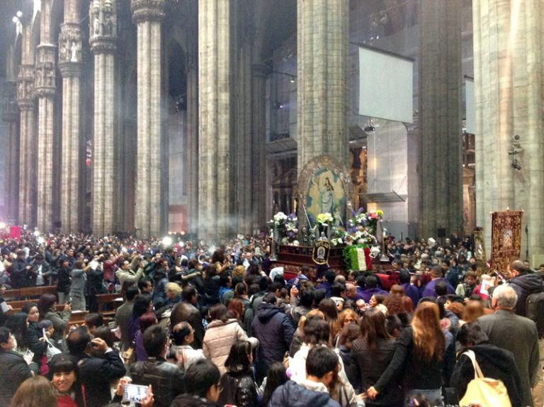 Si terrà domenica 21 ottobre, alle 13.30 nel Duomo di Milano, dopo il Pontificale per la Festa della Dedicazione della Cattedrale, la celebrazione eucaristica per la Festa del Señor de los Milagros, presieduta dall’Arcivescovo, monsignor Mario Delpini. Si tratta di una tradizionale devozionale peruviana che, grazie alla migrazione, si è ormai diffusa anche in Italia. «Quest’anno la festa si svolge nella fase conclusiva del Sinodo minore “Chiesa dalle Genti” – commenta don Alberto Vitali, responsabile della Pastorale diocesana dei migranti -. E questo lascia intravvedere come tradizioni molto antiche, sorte in altri territori, siano ormai entrate a far parte della tradizione devozionale anche della Chiesa di Milano. Gli immigrati aiutano la Chiesa locale a guardarsi allo specchio su come è cambiata grazie a chi è venuto qui. Nostri fratelli e sorelle battezzati lasciano la loro testimonianza di fede. È il segno che la Chiesa è sempre più cattolica, cioè universale».