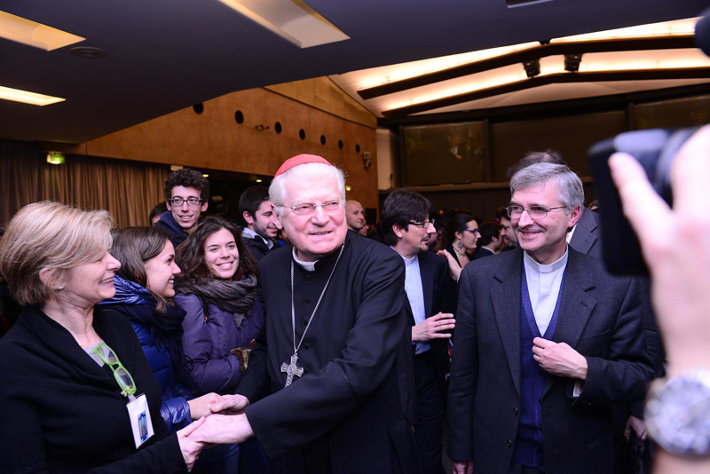 È seguita la proiezione di un incontro in oratorio di un gruppo di giovani (in allegato nel box in alto a sinistra), a mostrare un confronto sulla fede come percorso, apertura verso l’altro, scambio reciproco, scelta consapevole, in un contesto attraversato da differenti visioni del mondo. Il Cardinale ha apprezzato i rilievi al Gesù che si offre in modo «trasversale» a tutti: «La libertà è avere legami solidi, non il non averne!». Il filmato, seguito da un’ulteriore domanda della giovane spinner Lorenza, ha offerto lo spunto per il dialogo dell’Arcivescovo con i giovani presenti in sala e non solo. «Si percepisce una distanza quando si sente la perdita della ragione del nostro aderire – ha detto Scola -. Allora abbiamo perso la curiosità, cioè il chiedersi perché. Bisogna tornare alle cose come sono: alla realtà». E ancora: «L’uomo che non s’interroga è uno zombi! È Gesù che ci convoca, Abbiamo bisogno di “sangue nelle vene”… Tutti saremmo vagabondi, senza questo aiuto dall’Alto che si è fatto uomo!».