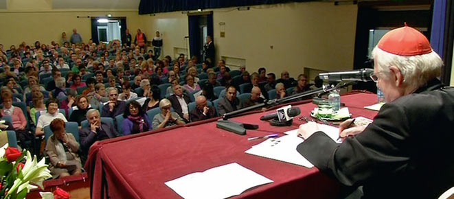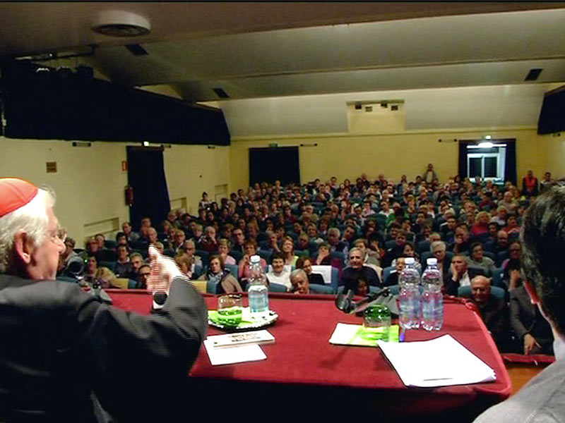 Le relazioni tra le persone, l’esperienza del dolore, i problemi del lavoro, la sfida educativa, la solidarietà, i rapporti affettivi sono tra i temi toccati dal cardinale Scola nella serata al Teatro Verdi di Corsico