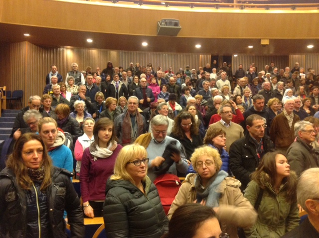Infine un atto d’amore realistico, incarnato per Gerusalemme, «la città più bella e più complicata al mondo. È città che unisce tutti i credenti, musulmani, ebrei, e cristiani ed è al tempo stesso la città che divide tutti i credenti, dove si arriva ad uccidersi proprio per amore di Gerusalemme. Ma da questa Chiesa non vengono solo notizie brutte, di violenze. Il 12 febbraio sarò a Roma perché il Santo Padre annuncerà la data della canonizzazione di due sante arabe palestinesi, fondatrici di due ordini religiosi. Questa è terra non solo di terrorismo, ma anche di santità e gioia di vivere».