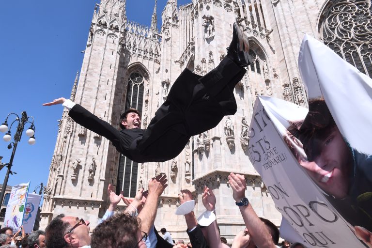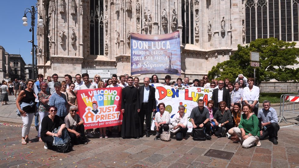 E, alla fine, la festa che si trasferisce all’esterno del Duomo – dopo il saluto agli ormai preti 2022 in casa dell’Arcivescovo – con gli striscioni, i canti e il tradizionale lancio in aria dei sacerdoti novelli.