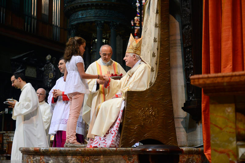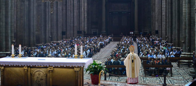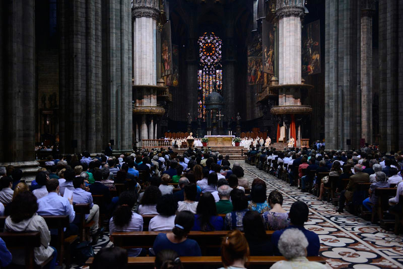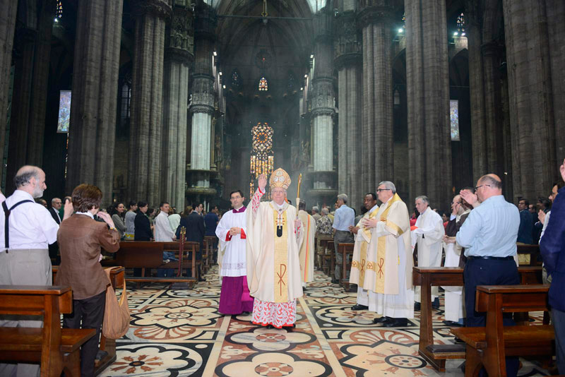 Scola ha spronato dunque anche i membri dell’Opus dei a prendere parte il prossimo anno all’iniziativa pastorale «Il campo e’il mondo», invito accolto durante l’apertura della celebrazione da don Matteo Fabbri, vicario regionale della Prelatura dell’Opus dei per l’Italia, presente assieme agli ottomila fedeli in Duomo. «La nostra Chiesa ambrosiana -ha detto dunque Scola – di fronte alla forte evoluzione in atto nella nostra società lombarda, sullo sfondo dei mutamenti che stanno interessando il nostro paese e l’intera Europa, è chiamata ad una più decisa comunicazione di Gesù Cristo come Evangelo dell’umano. Parrocchie, unità e comunità pastorali, comunità religiose, associazioni e movimenti, decanati, zone pastorali sono chiamati a riscoprire tutto il peso dell’affermazione di Gesù nella parabola della zizzania: «Il campo è il mondo». Il mondo va concepito dinamicamente come luogo della vita delle persone e dell’esprimersi delle loro relazioni. In questo senso, esso è costituito da tutti gli ambienti dell’esistenza quotidiana degli uomini e delle donne: famiglie, quartieri, scuole, università, lavoro in tutte le sue forme, modalità di riposo e di festa, luoghi di sofferenza, di fragilità, di emarginazione, ambiti di edificazione culturale, economica e politica… in sintesi, il mondo è la società civile in tutte le sue manifestazioni».