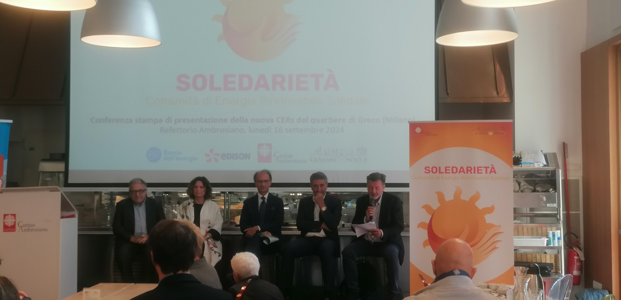 Ha un nome molto suggestivo, «SOLEdarietà», la Comunità di energia rinnovabile e solidale (Cers) che nasce – fra le prime a Milano – nel quartiere di Greco e che coinvolge Caritas Ambrosiana e la comunità pastorale Giovanni Paolo II (formata dalle parrocchie di Santa Maria Goretti e San Martino in Greco). Il progetto, dal costo di 270 mila euro, è promosso nell’ambito di «Comunità energetiche solidali», iniziativa ad alto impatto sociale nata dalla collaborazione tra Fondazione Banco dell’energia (ente filantropico che ha tra i suoi obiettivi quello di sostenere progetti legati all’efficientamento degli edifici del terzo settore per promuovere il risparmio energetico), ed Edison, che ha finanziato e fornito il supporto tecnico. Prevede l’installazione di pannelli fotovoltaici sul tetto del Refettorio Ambrosiano, in piazza Greco, e sulla chiesa e la casa parrocchiale di Santa Maria Goretti, in via Melchiorre Gioia. I due impianti hanno una potenza complessivo di circa 100 kWp e si stima produrranno 107 MWh di energia.