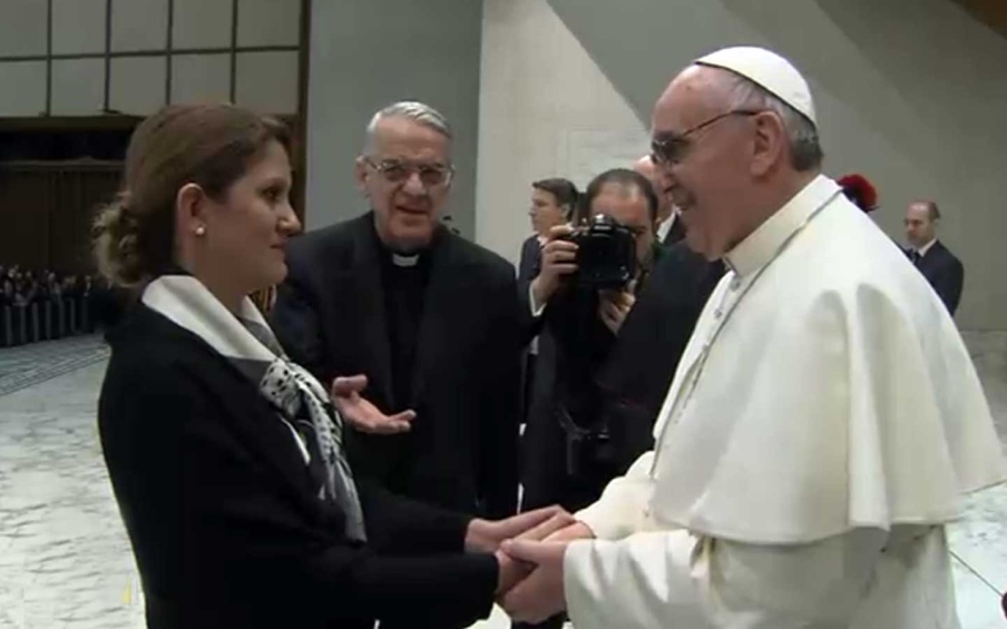 «Il vostro ruolo è indispensabile per raccontare la realtà contemporanea», ha sottolineato il Santo Padre. «Cercate di conoscere sempre di più la vera natura della Chiesa e le motivazioni spirituali che la guidano e che sono le più autentiche per comprenderla – il suo invito -. La Chiesa non ha una natura politica, ma essenzialmente spirituale. Esiste per comunicare la verità, la bontà e la bellezza in persona».