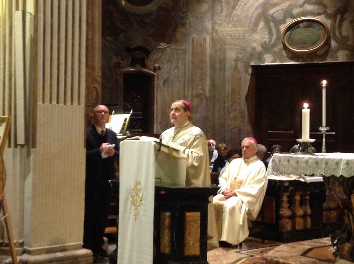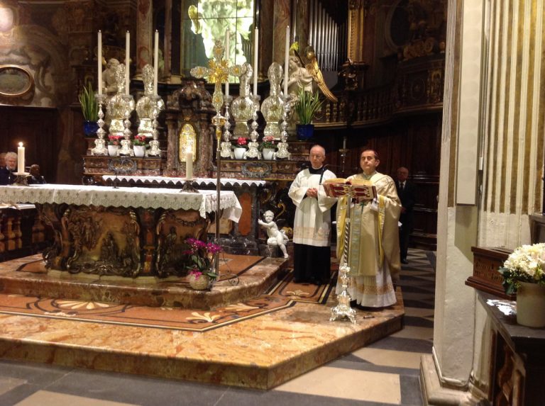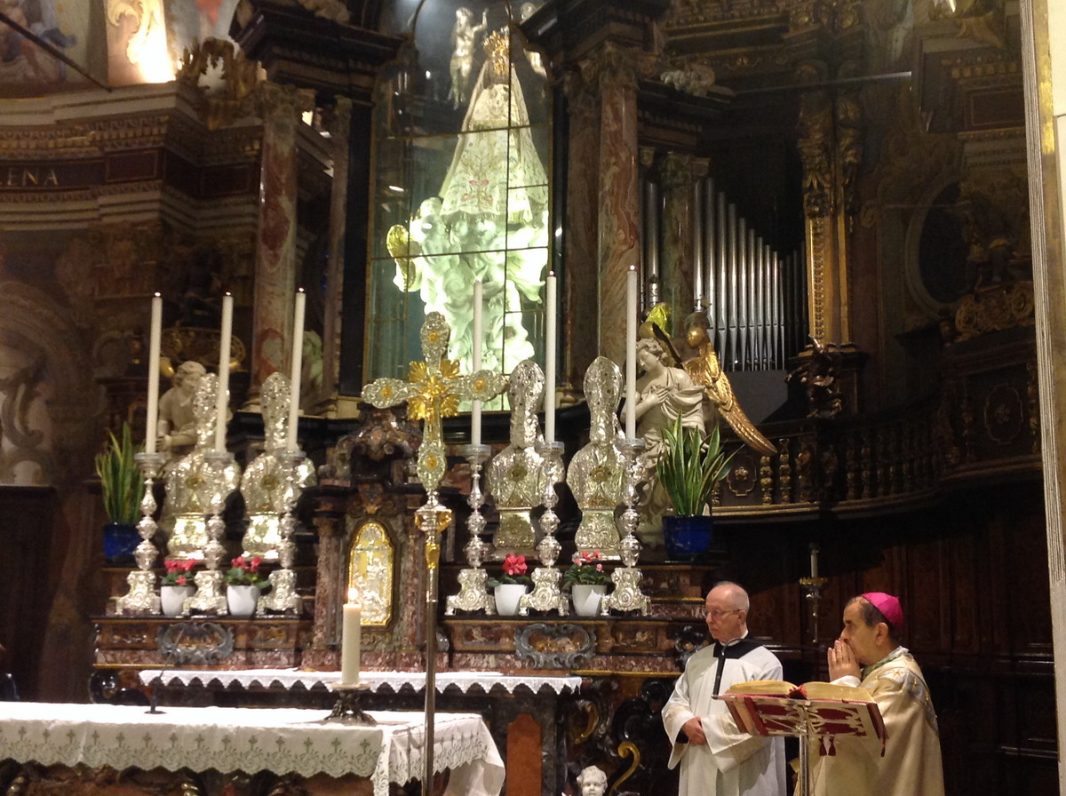Ormai si è arrivati al Santuario – durante la salita l’Arcivescovo entra brevemente nella Cappella XIII “La discesa dello Spirito Santo” appena restaurata e alla quale, nella stessa mattinata, viene dedicata una presentazione – già affollato di fedeli. Accanto a monsignor Delpini, concelebrano il vescovo Francesco Brugnaro, il vicario episcopale della Zona II-Varese don Giuseppe Vegezzi, il Decano, don Mauro Barlassina, l’Arciprete del Santuario, don Sergio Ghisoni, arcipreti emeriti, il prevosto di Varese, don Luigi Panighetti e altri sacerdoti della Zona.