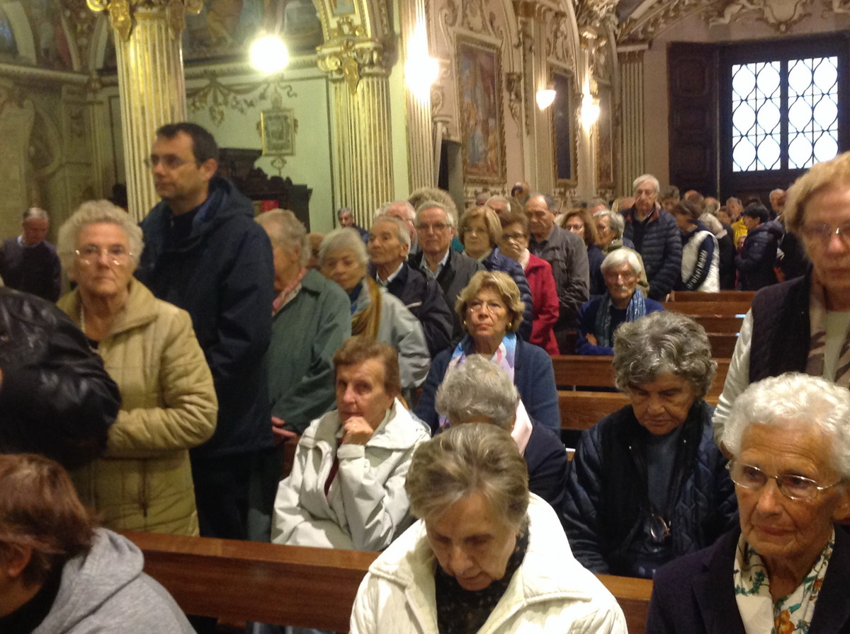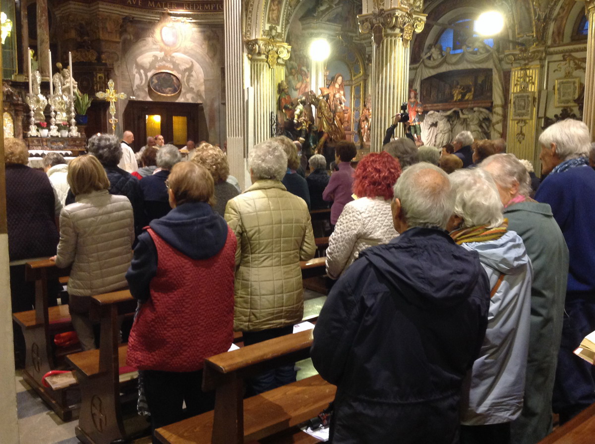 Si rimane come sospesi nel tempo e nello spazio, risalendo il percorso che porta al Santuario di Santa Maria del Monte, passando appunto, tra le XIV Cappelle con le loro statue, mute testimoni di centinaia di anni di devozione. Un sensus fidei che si tramanda di generazione in generazione: dall’antico, fino a oggi, quando ogni sabato mattina, i pellegrini – anche se d’inverno c’è neve e freddo pungente – camminano al Sacro Monte dicendo il Rosario per entrare, infine, nel Santuario per la Messa. E così succede anche nel sabato mattina di fine ottobre, in cui, per ringraziare della canonizzazione di san Paolo VI, a dire il Rosario, con i sacerdoti del territorio e a presiedere l’Eucaristia, arriva anche l’Arcivescovo.
