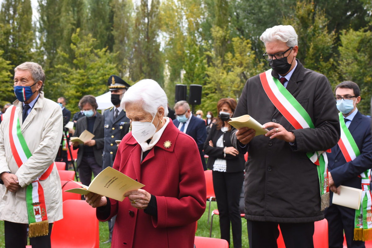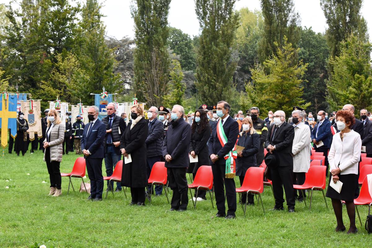 Nel grande spazio tra i 118 faggi piantati nel 2002 – uno per ciascuno dei morti – e le semplici lapidi che, disposte a terra a semicerchio, riportano solo i nomi, vengono posate rose bianche. Arrivano i parenti, anche dalla Svezia, i sindaci con i più di 30 gonfaloni delle rispettive città e piccoli Comuni dove abitavano le vittime: non mancano quelli di Milano, della Regione e della Città metropolitana. In prima fila ci sono Adele Scarani Pesapane, presidente del Comitato “8 ottobre”, il primo cittadino di Milano Beppe Sala, la vicepresidente di Regione Lombardia Letizia Moratti, l’ambasciatore e il console svedesi, i consoli di Svizzera e Norvegia, il prefetto di Milano Renato Saccone, il Chief Operating Officer della Sea Alessandro Fidato, il presidente nazionale dell’Ente Nazionale per l’Aviazione Civile (Enac) Pierluigi Di Palma e molte altre autorità civili e militari.