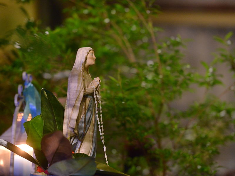 Nel cuore del mese mariano e in quel cuore particolare della città che ormai si chiama la Chinatown di Milano, è questa la cornice in cui si recita il Rosario. Si attende il cardinale Scola che però, per una indisposizione, non può presiedere il rito, celebrato allora da don Sergio Gianelli in rappresentanza dell’Arcivescovo, da don Mario Longo, parroco della Ss Trinità (nel cui territorio si trova il civico 36 di via Paolo Sarpi in cui i fedeli sono riuniti) e dal vicario parrocchiale don Giuseppe Zhang, cappellano della Comunità cattolica cinese. Tra i presenti anche alcuni neo-cristiani che hanno ricevuto il battesimo proprio dalle mani dell’Arcivescovo, in Duomo, durante la Veglia pasquale. Si pregano i Cinque misteri della Luce: per un curioso e suggestivo contrasto culturale – che ben rappresenta la città multietnica -, la piccola statua della Madonna, davanti alla quale gli abitanti del condominio si raccolgono in preghiera nelle sere di maggio da almeno 10 anni, è posta accanto allo strumento tipico dell’Estremo Oriente, lo yang qing suonato da tre piccoli di origine cinese.