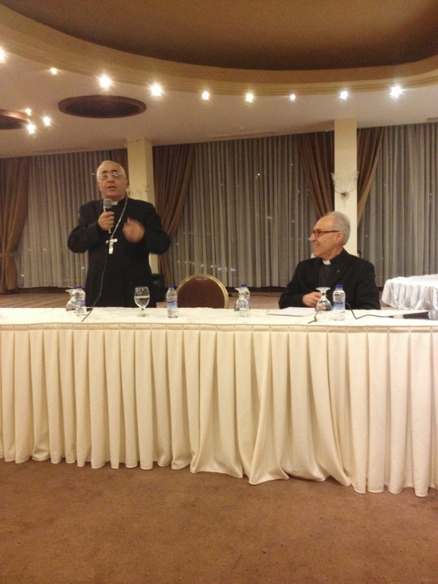 Mons. Tremolada, in particolare, ha insistito sul volto triste dei discepoli trasfigurato dall’incontro con Gesù. Tutto il programma del pellegrinaggio, del resto, mirava proprio ad offrire questa esperienza di conversione, di ritorno alla coerenza cristiana che ha nel lieto annuncio il suo fondamento. Gli strumenti sono stati sia la visita ai luoghi – dal fiume Giordano ad Ain Karem, dal Monte delle Beatitudini a Cafarnao; da Macheronte al Monastero della Quarantena – sia l’incontro con le pietre vive di questi siti, come la farmacista di Nazaret che ha raccontato di sé o come mons. Maroun, Vicario di Giordania, che ha toccato temi di attualità, tra tutti la questione dei profughi di guerra scappati dalle nazioni circostanti e ospitati anche nelle chiese del Paese. Un fenomeno con numeri sbalorditivi: la Giordania conta 6 milioni di abitanti e ospita al momento 3 milioni di profughi.