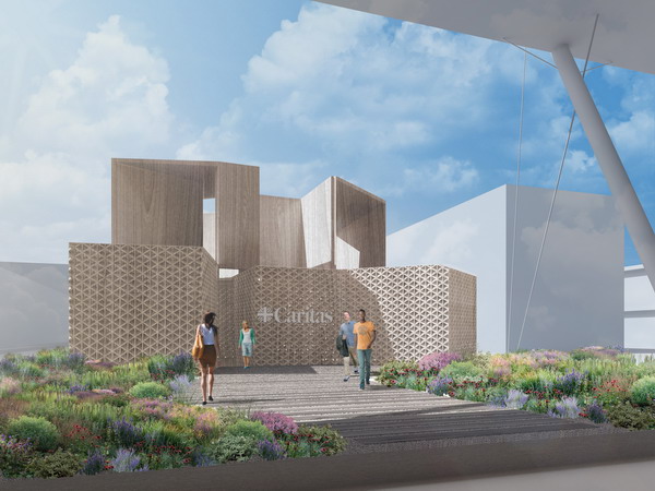 Posto proprio di fronte all’ingresso principale del sito Expo, il padiglione Caritas declina l’idea della condivisione come ricchezza, sviluppando il tema «Dividere per moltiplicare», ispirato all’episodio evangelico della moltiplicazione dei pani e dei pesci. Il padiglione Caritas ribattezzato con il nome di Edicola, nella forma di un cubo che aprendosi forma altri cubi, declina architettonicamente l’idea della divisione come via per arricchire tutti. In questo spazio suddiviso in diversi ambienti si compie un’esperienza interattiva e multimediale in più tappe centrate su conoscenza, emozione, visione, condivisione e partecipazione.