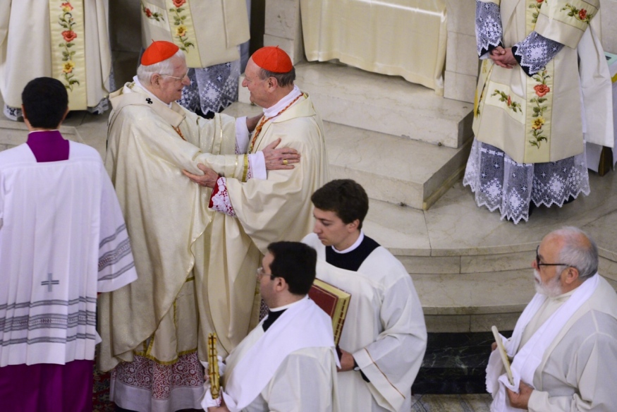 «Sono emozionato in questa basilica, dove non tornavo da molti anni e nella quale sono salite le nostre preghiere e invocazioni di giovani seminaristi e sacerdoti – dice a sua volta il cardinale Ravasi, in avvio di omelia -. Mi piace pensare, con uno sguardo semplice di amicizia all’immagine di una nube luminosa fatta di gocce di acqua attraversate dalla luce di tanti testimoni». Il riferimento è alla Parola di Dio presentata attraverso un dittico con due tavole antitetiche, «una tenebrosa, notturna, tratta dal Cantico dei Cantici, nella ricerca dell’amato da parte dell’amata» e, l’altra, di luce, «come ci spiega il Vangelo di Giovanni appena cantato».