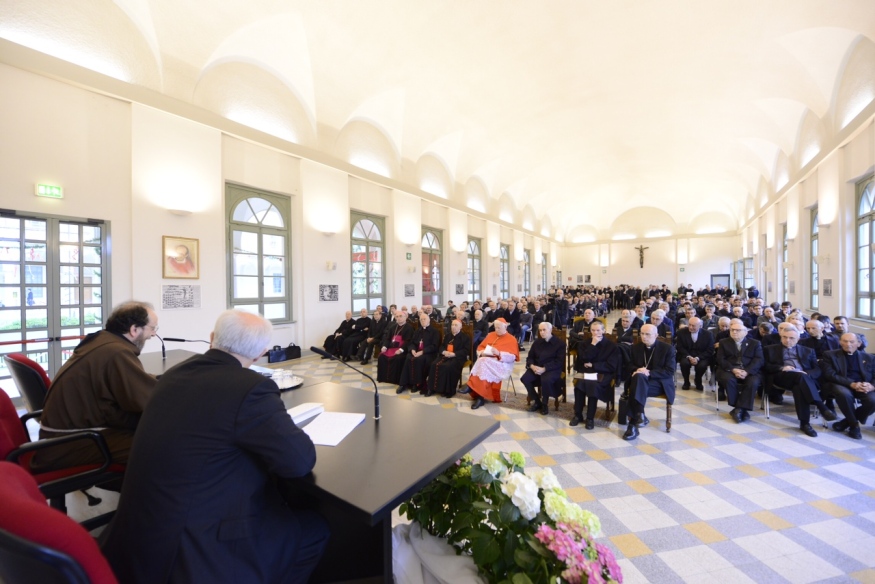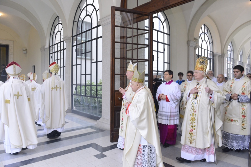 Nell’Aula intitolata a Paolo VI – in cui vengono poste le opere -, prende la parola per la riflessione iniziale monsignor Paolo Martinelli, vescovo ausiliare e vicario per la Vita consacrata maschile (quest’anno per la prima volta sono invitati anche i presbiteri religiosi). Parla della “Missione del prete oggi”: «Un tema appassionante soprattutto per il profilo del sacerdote ambrosiano. Infatti, la storia della nostra Chiesa ci narra di un’intensa vita spirituale e di studio rigoroso che si documenta nell’inserzione dei seminaristi in luoghi di missione e di sofferenza». Così come lo stesso Martinelli ha potuto vedere personalmente presso l’Istituto Sacra Famiglia, dove era impegnato come giovane sacerdote cappuccino: «La buona fama del clero ambrosiano si gioca nell’intreccio tra missione e oggi. Non si tratta di pensare, in modo astorico, l’idea del presbitero in una concezione astratta da applicare meccanicamente, ma nemmeno di vederla come “liquida”. Non si può pensare, infatti, al sacerdote come a un dispositivo, uno smartphone a cui applicare delle app, ma come persona che si qualifica nella missione: come un mandato, un inviato per il preciso compito dell’edificazione del Regno. La novità del ministero ordinato cristiano trae la sua origine dalla novità di Cristo, quale missione stessa del Padre. La missione al cuore del popolo non è un’appendice o un momento tra gli altri, “ma qualcosa che non si può sradicare dal mio essere prete se non voglio autodistruggermi”, scrive infatti papa Francesco in Evangelii Gaudium. Il prete non può che comprendersi nel legame inscindibile tra Colui che manda e coloro a cui si è mandati». In questo senso, la missione del presbitero non può che assumerne tutte le circostanze e ciò comporta il confronto, la valorizzazione quotidiana di ciò che edifica il bene di tutti: «Dio si comunica attraverso la realtà umana, per questo ha bisogno degli uomini (il richiamo è al volume del Cardinale dal medesimo titolo e dedicato alla vocazione, ndr) e, dunque, il prete oggi ha il compito di testimoniare come l’incontro con Cristo realizzi l’umano, formando i fedeli all’Evangelo. Così, il sacerdote deve avere a cuore lo sguardo tenero di Cristo sull’umano, che sa ritrovare il bene in ogni persona. La vita come vocazione non è una premessa da lasciarsi magari alle spalle, ma è la struttura stessa della vita. Non è la disponibilità a generare la missione, ma la chiamata personale, ma non individuale, che chiede sempre appartenenza affettiva ed effettiva al presbiterio, in una reciproca inclusione, capace di valorizzare i diversi carismi della Chiesa». Come prioritariamente avviene nell’attenzione specifica alla famiglia crocevia dell’umano, in cui si gioca il ruolo cruciale del laicato. «Quando il presbitero vive la propria missione come dedizione al popolo di Dio può sperimentare la gioia profonda di una vita data e, per questo, piena e compiuta: un segno luminoso per tutta la nostra Chiesa e un invito incoraggiante per i novelli presbiteri».