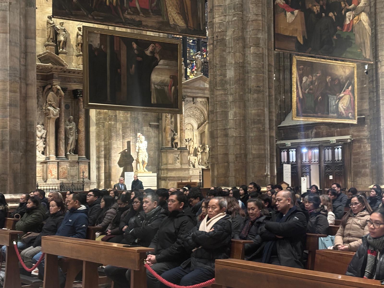 Così anche in Duomo oltre un migliaio arrivano sotto una pioggia battente: dal Console generale a Milano Jim Tito B. San Agustin a tante famiglie, giovani e anziani, per l’Eucaristia presieduta da monsignor Giuseppe Vegezzi, Vescovo ausiliare e Vicario per la Zona I, concelebrata da una decina di sacerdoti, tra cui don Alberto Vitali, responsabile della Pastorale diocesana dei Migranti e parroco di Santo Stefano.