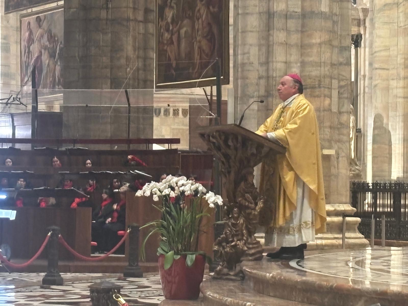 Tutti, come è evidente, ma anzitutto «voi, in modo particolare – scandisce il Vescovo, rivolgendosi direttamente ai presenti -, siete chiamati a ricordare il canto del gallo che annuncia una nuova luce qui anche nella nostra Milano, che è certamente anche la vostra Milano, nella nostra Cattedrale che è certamente anche la vostra. Ci vogliamo impegnare a manifestare l’amore e la tenerezza di Dio verso tutti, specialmente verso gli ultimi. Siamo chiamati a essere fermento in una società che spesso non riesce più a gustare la bellezza di Dio e a sperimentare la grazia della sua presenza», conclude, richiamando alcune parole di papa Francesco, pronunciate nella Basilica di San Pietro durante la celebrazione di Simbang Gabi di qualche anno fa: «Voi che avete lasciato la vostra terra alla ricerca di un futuro migliore, avete una missione speciale. La vostra fede sia lievito nelle comunità parrocchiali alle quali appartenete oggi. Siamo tutti chiamati ad annunciare assieme il Vangelo, la Buona Novella di salvezza, in tutte le lingue, così da raggiungere più persone possibile».