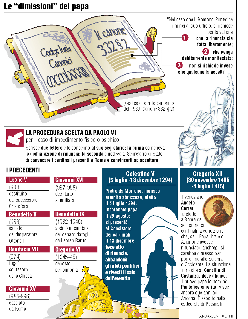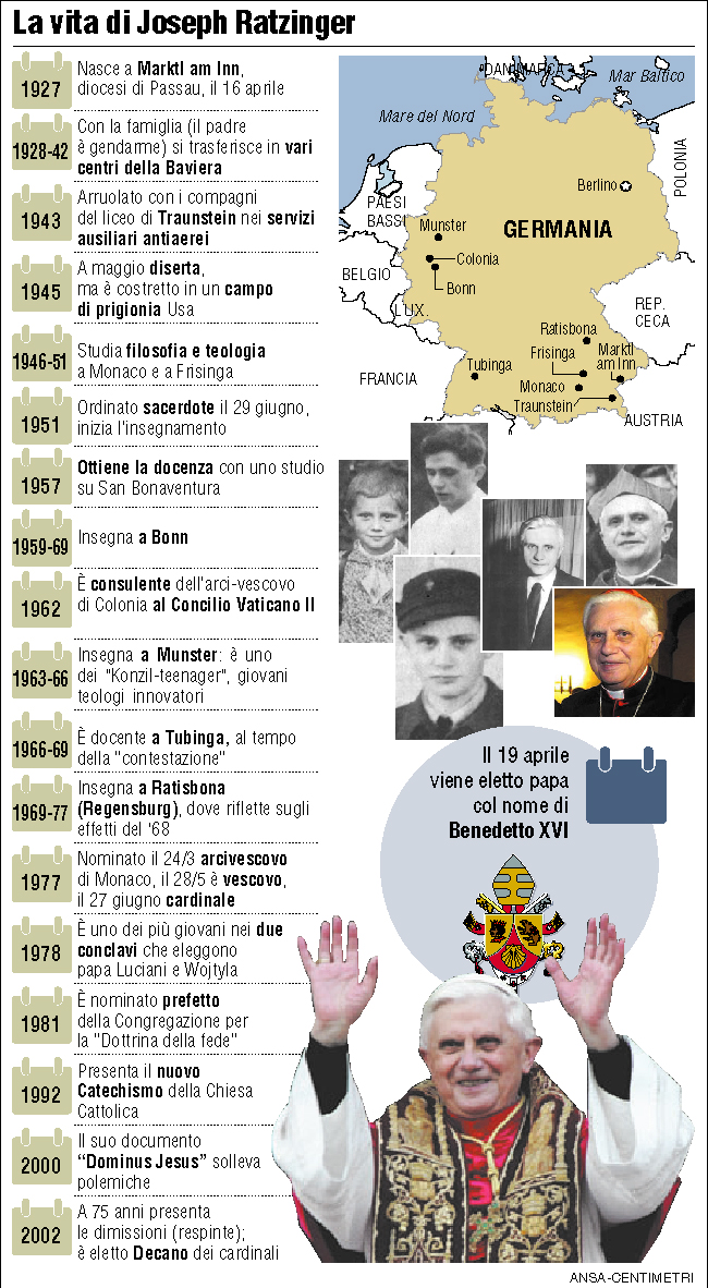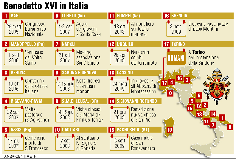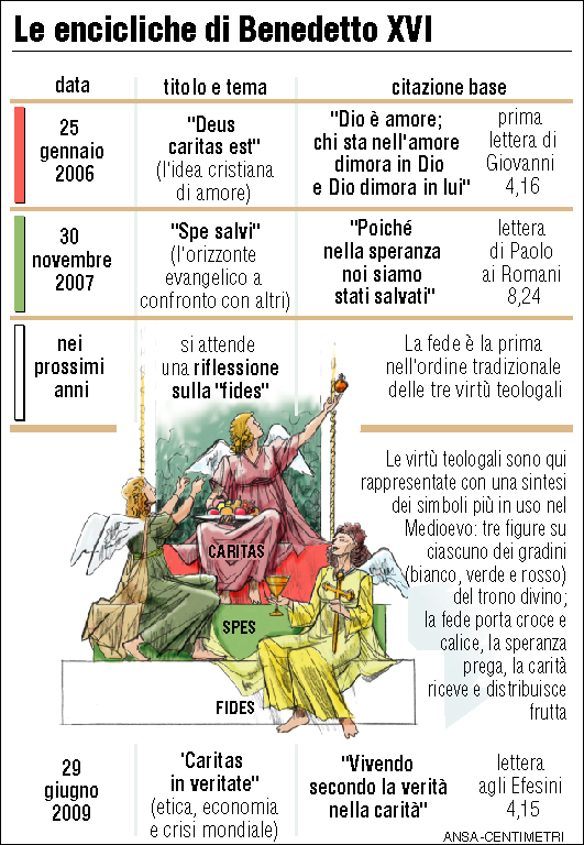 In allegato nel box a sinistra, alcune infografiche dedicate a Benedetto XVI: la sua biografia, le encicliche (Deus caritas est, Spe salvi e Caritas in veritate), le visite pastorali in Italia e il dettaglio delle sue dimissioni.