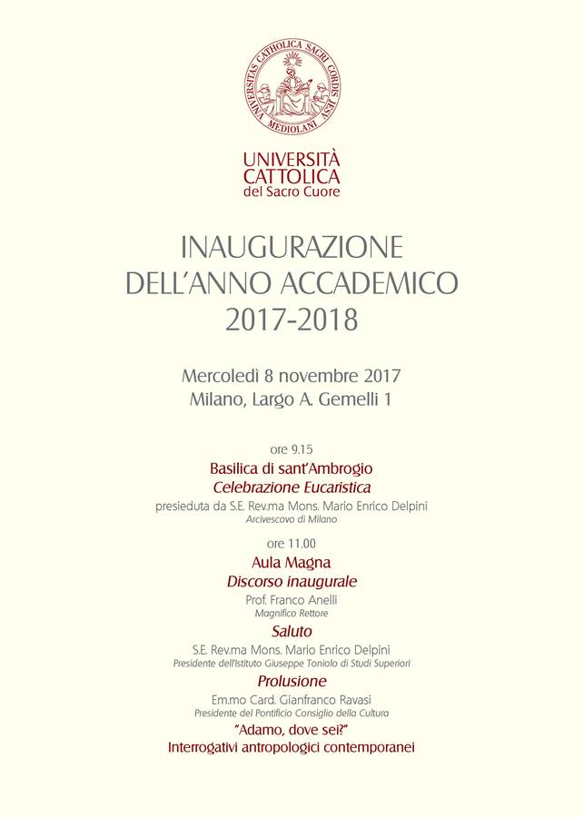 Dopo il Rettore prenderà la parola per un saluto monsignor Delpini, nella sua veste di nuovo presidente dell’Istituto Giuseppe Toniolo di Studi Superiori, ente fondatore della Cattolica. Ospite di eccezione dell’inaugurazione, sarà il cardinale Gianfranco Ravasi, ambrosiano di nascita, presidente del Pontificio Consiglio della Cultura. Il titolo della sua Prolusione, «Adamo, dove sei? Interrogativi antropologici contemporanei», intende definire il senso dell’interrogarsi su un tema fondamentale come quello dell’identità della persona. «Nel fervore di iniziative che promuoviamo e nel continuo aprirsi di nuovi scenari, è essenziale per l’Ateneo mantenere lo sguardo fisso sui valori che ne orientano la missione e seguire con attenzione le trasformazioni culturali e antropologiche nelle quali sono coinvolte, in particolare, le nuove generazioni – osserva ancora il professor Anelli -. Per queste ragioni la prolusione del cardinale Ravasi, che si confronta con gli interrogativi fondamentali della condizione umana contemporanea, sarà di prezioso insegnamento e, insieme, di stimolo per una riflessione sui compiti di un Ateneo cattolico e sulla sua capacità di risposta alle attese di tanti giovani e delle loro famiglie».