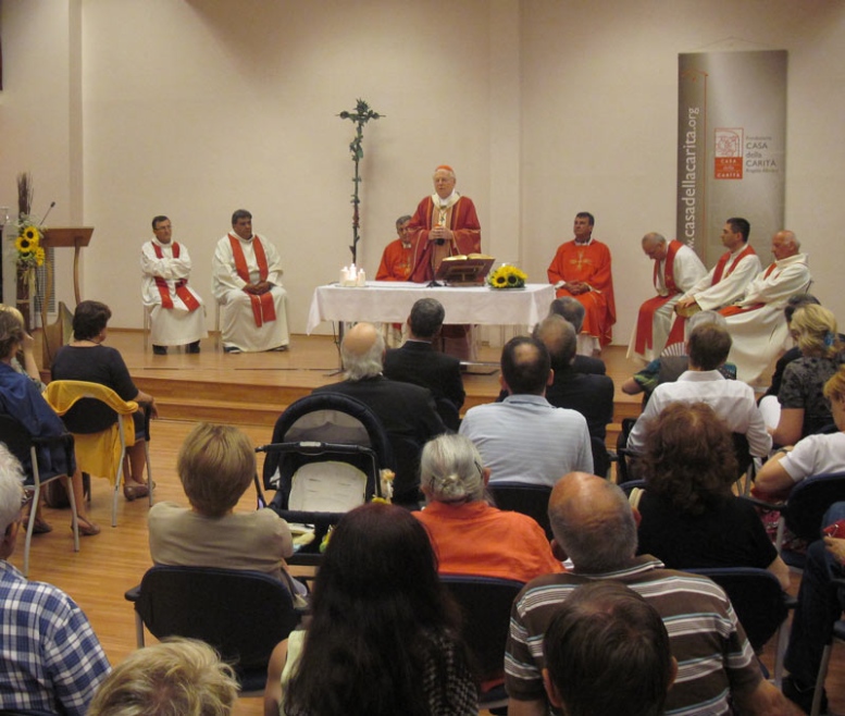 Nell’auditorium dedicato a Teresa Pomodoro l’Arcivescovo ha poi celebrato la Messa insieme al fondatore don Virginio Colmegna con l’assistente don Massimo Mapelli, da poco destinato a un impegno diocesano Caritas. Nella sua introduzione don Virginio ha ricordato la felice coincidenza con la sua prima Messa, celebrata a Saronno 43 anni fa, accanto al ricordo alle parole del cardinal Martini di testimoniare sempre “l’eccedenza della carità” e all’amicizia affettuosa del cardinal Dionigi Tettamanzi a essere un po’ come la locanda del samaritano evangelico. Oltre che “accademia della carità” e “luogo di ricerca comune”, per don Virginio in questi 8 anni la Casa ha dimostrato di essere una “piccola esperienza di economia civile”, ospitando ogni anno oltre 350 persone, 3500 accessi a docce e guardaroba, con una media di 1645 colloqui al Centro di Ascolto. Nel letterale disfacimento, tra sofferenza e rotture relazionali, di molte famiglie di oggi don Colmegna ha anche rilanciato la proposta di un gemellaggio: “noi accogliamo famiglie, avremmo però bisogno che altre famiglie ci sostengano, perché non nascondo che il vero problema quest’anno è il nostro bilancio in rosso”.