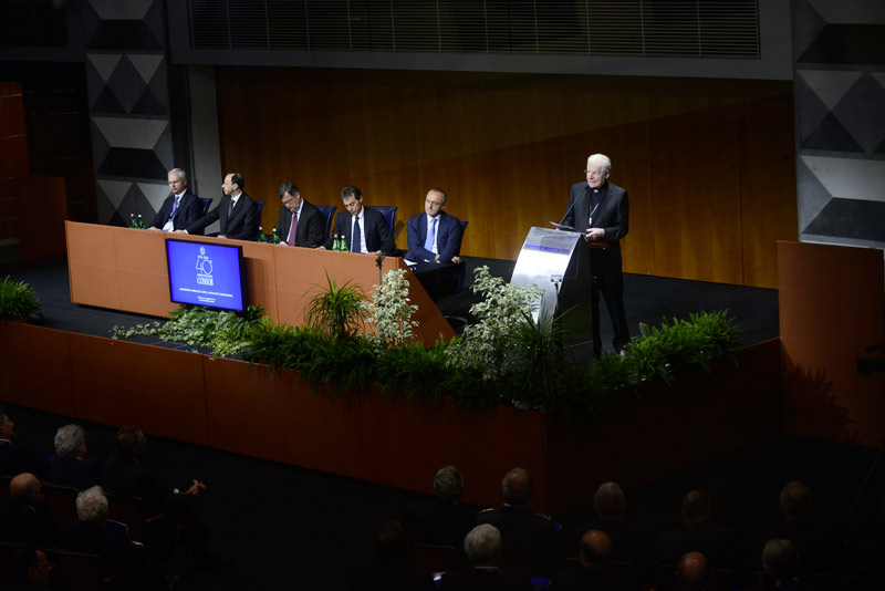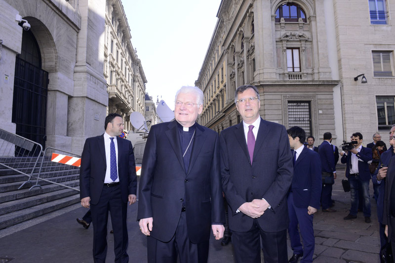 Nello storico Palazzo Mezzanotte in piazza della Borsa, davanti al gotha dell’economia e della finanza italiana – è presente anche il ministro alle Infrastrutture, Lupi -, dopo la relazione di apertura del presidente della Commissione Giuseppe Vegas, prende la parola l’Arcivescovo, che definisce una tale opportunità «un segno bello di come si debba vivere e convivere in una società plurale come la nostra, tendendo a un riconoscimento reciproco e virtuoso».