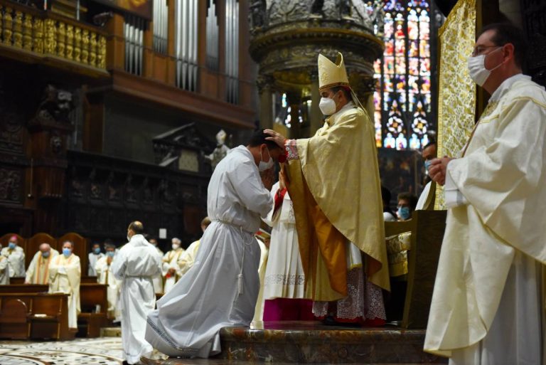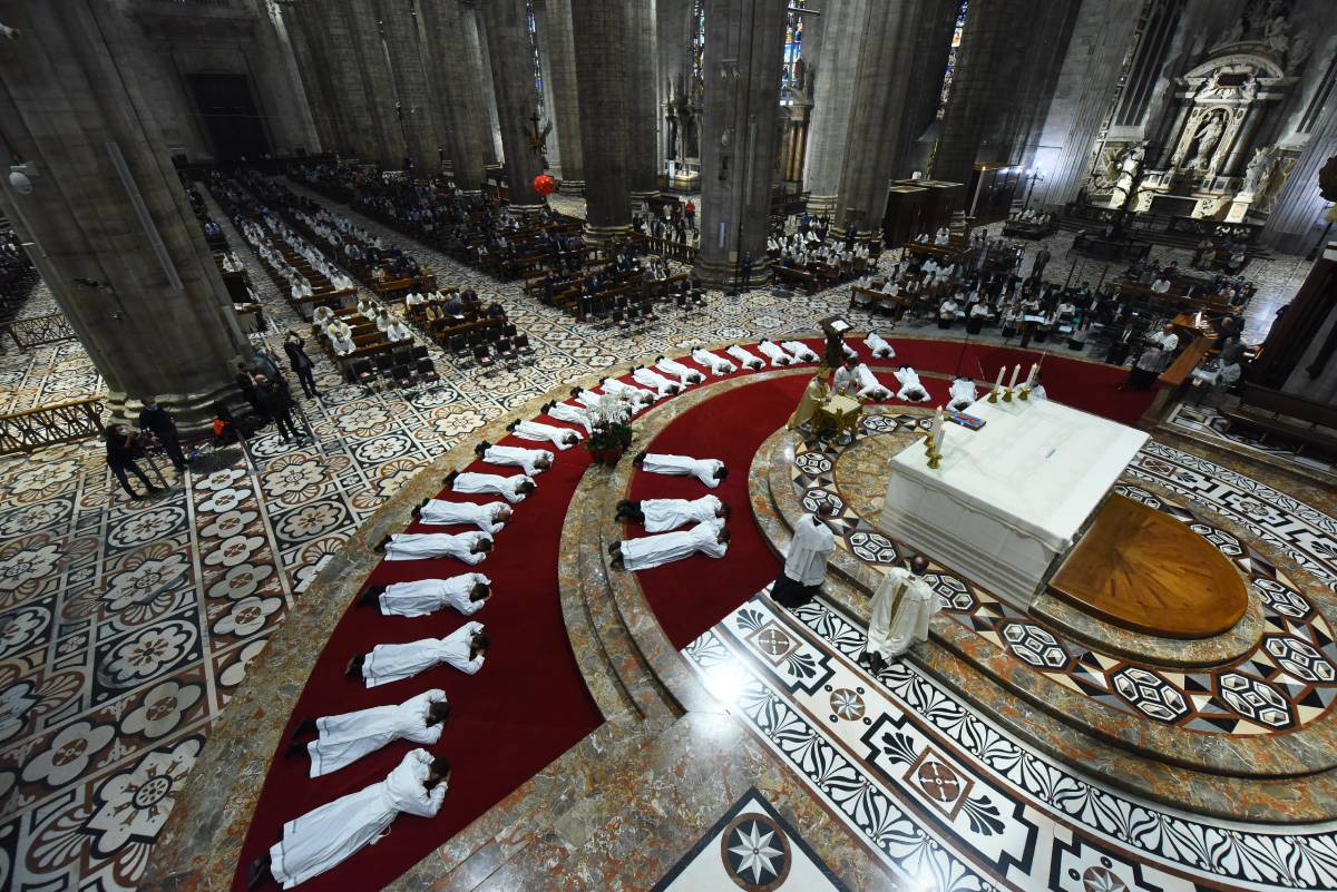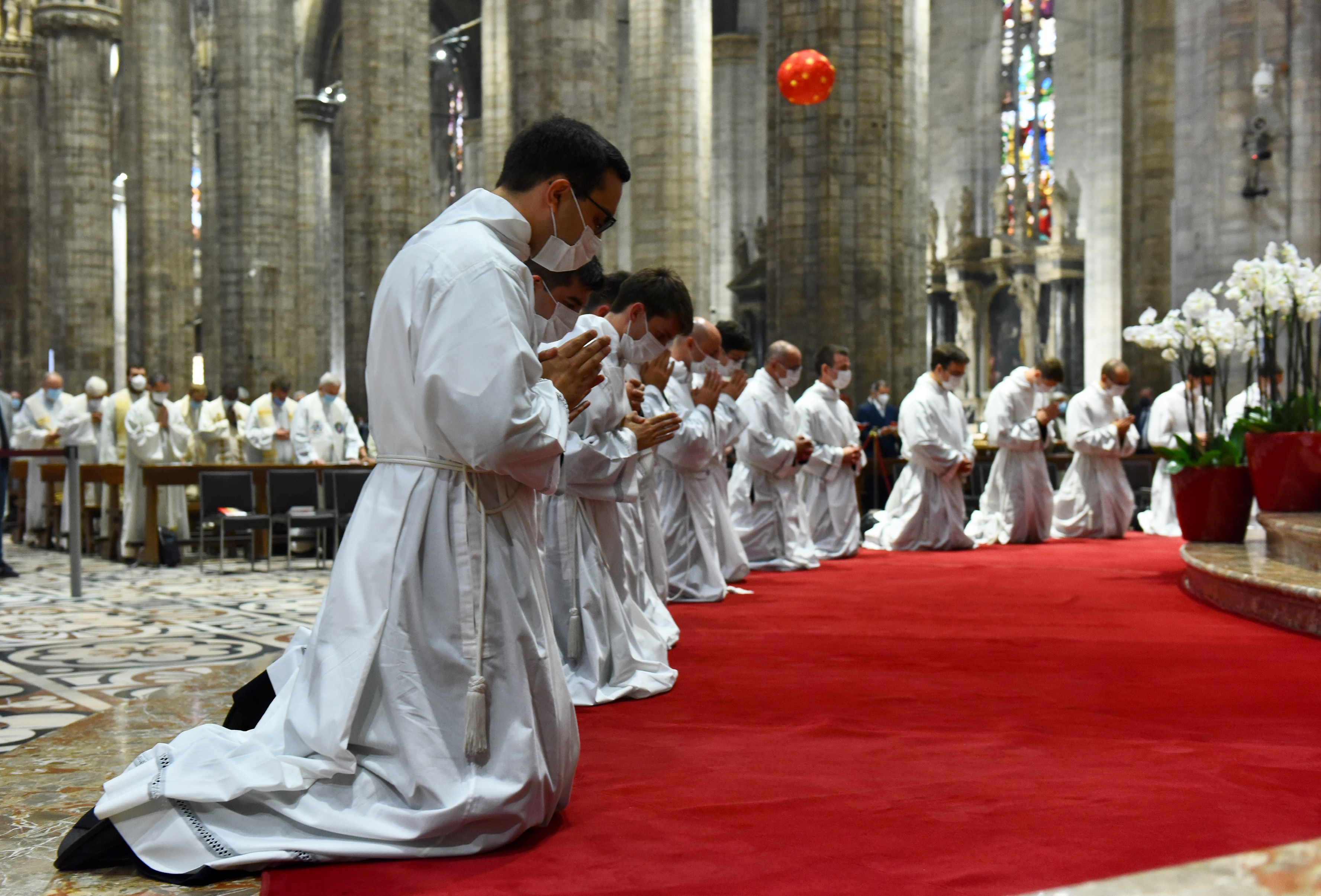 Concelebrano 7 Vescovi, i membri del Consiglio Episcopale Milanese, il rettore del Seminario arcivescovile, don Enrico Castagna e il Superiore generale del Pime, padre Ferruccio Brambillasca, i Canonici della Cattedrale con l’arciprete, monsignor Gianantonio Borgonovo e molti sacerdoti tra cui i parroci e responsabili di Comunità Pastorali di origine o di attuale destinazione dei Diaconi. Tanti anche i parenti – con i genitori in prima fila nella navata centrale – e gli amici di questi uomini di età diverse – dai 23 ai 57 anni -, di provenienze differenti – tra gli ambrosiani, 3 sono milanesi, ma sono rappresentate anche le altre 6 Zone pastorali -, e con esperienze di vita e di studio variegate alle spalle: dall’ingegnere a chi, per un decennio, è stato consigliere comunale, dall’esperto in comunicazione all’idraulico. Dei diaconi del Pime, 2 sono brasiliani, 1 del Camerun e 1 indiano.