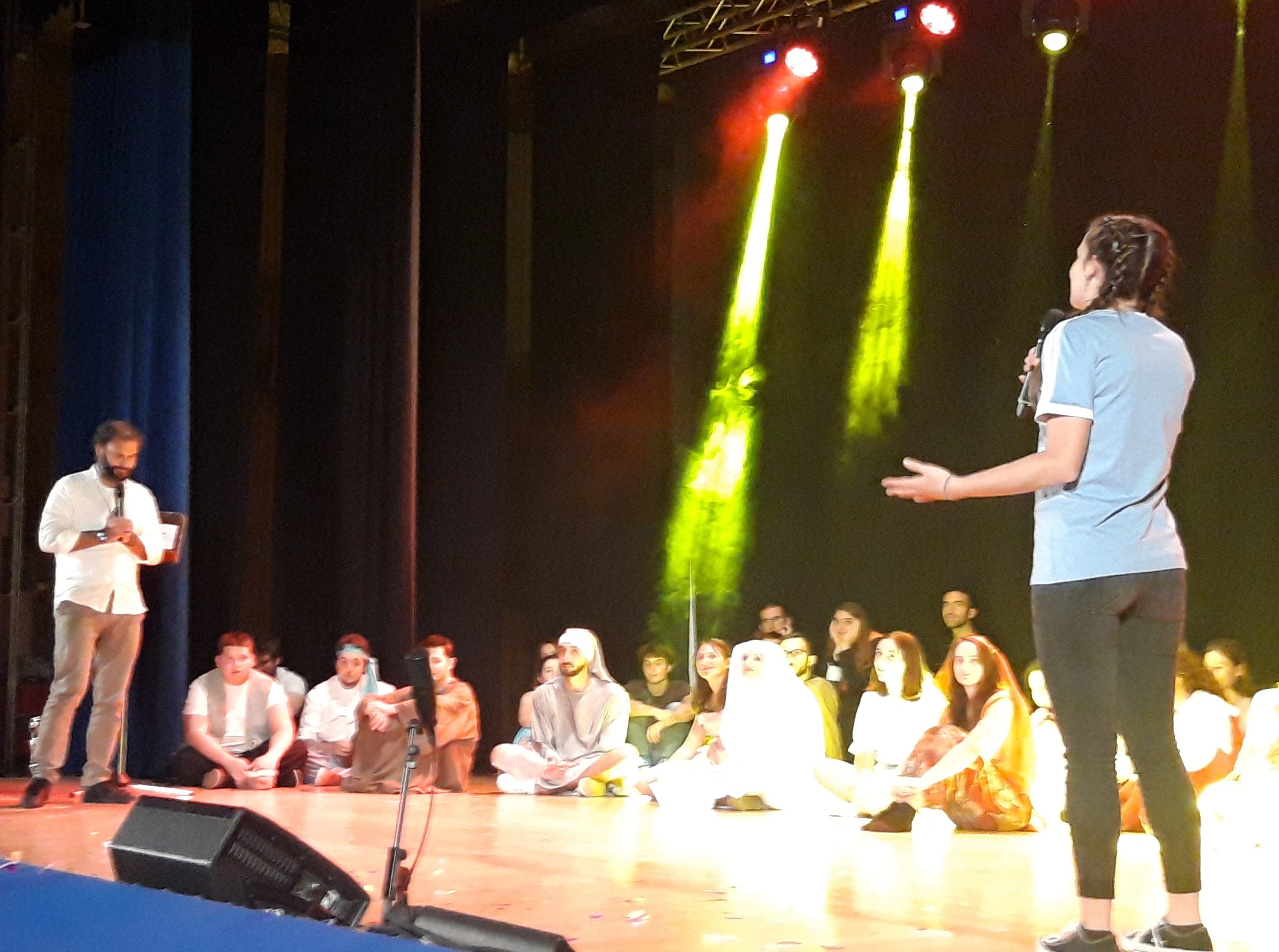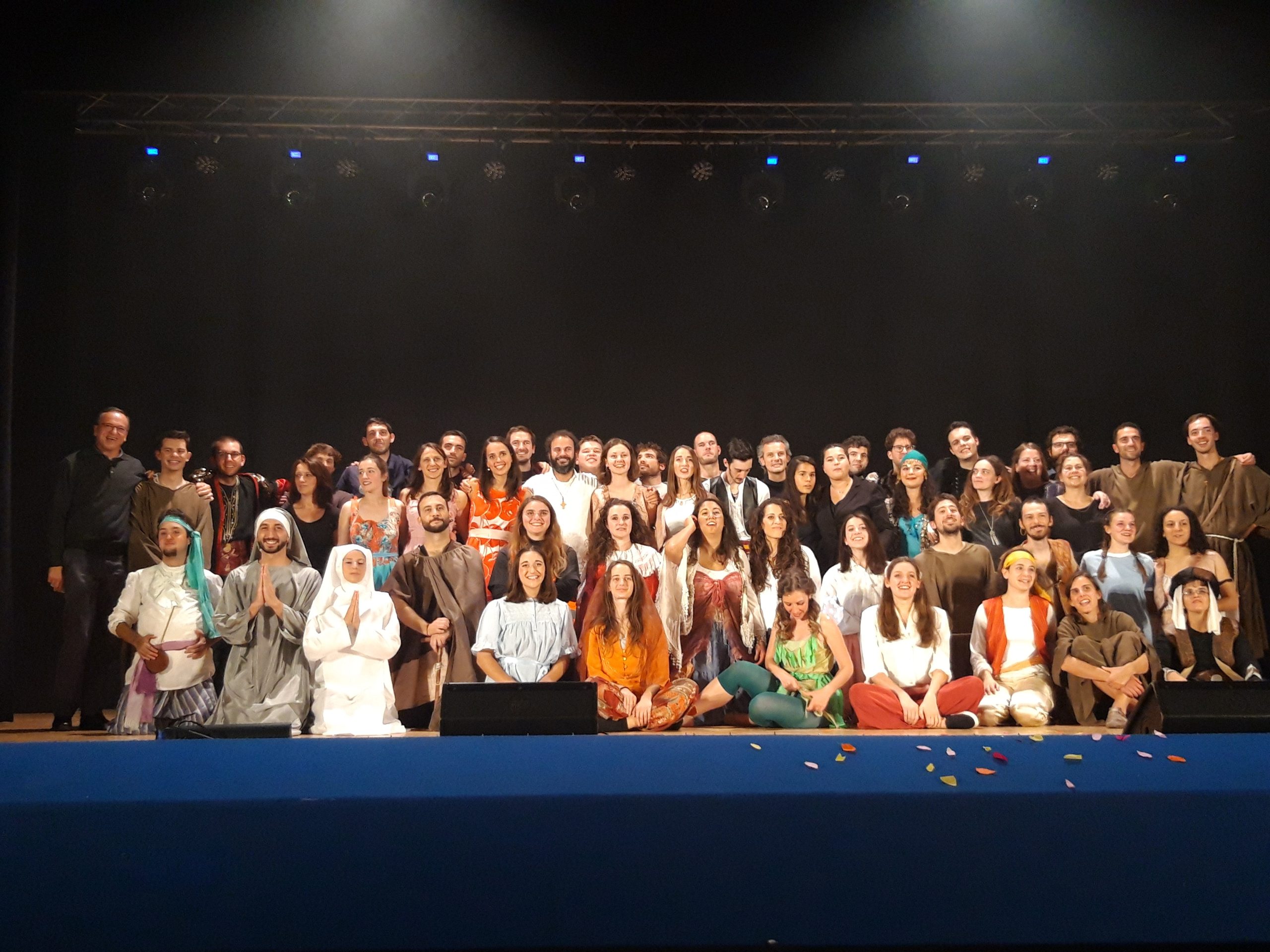 A dare inizio al programma di saluti sono stati una cinquantina di giovani saliti sul palco della sala Artefsera per lo spettacolo Musical Middle, ovvero una simpatica riproposizione dei quattro recital che in questi anni i giovani della “Compagnia dello specchio” hanno proposto stimolati da don Tommaso. Così le canzoni di Bennato si sono mischiate a testi di Garinei e Giovannini per Aggiungi un posto a tavola, passando per il palazzo del sultano di Aladin in cui si trovavano per caso anche San Francesco e i suoi primi seguaci protagonisti di Forza venite gente!.