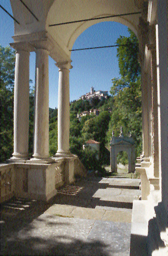 La “via sacra” si snoda fino al santuario di Santa Maria al Monte ed è fiancheggiata da 14 cappelle che illustrano i misteri del Rosario. Quattrocento anni fa la posa della prima pietra. Un “cantiere” straordinario, dove arte e fede si sono fuse in uno splendido contesto ambientale.