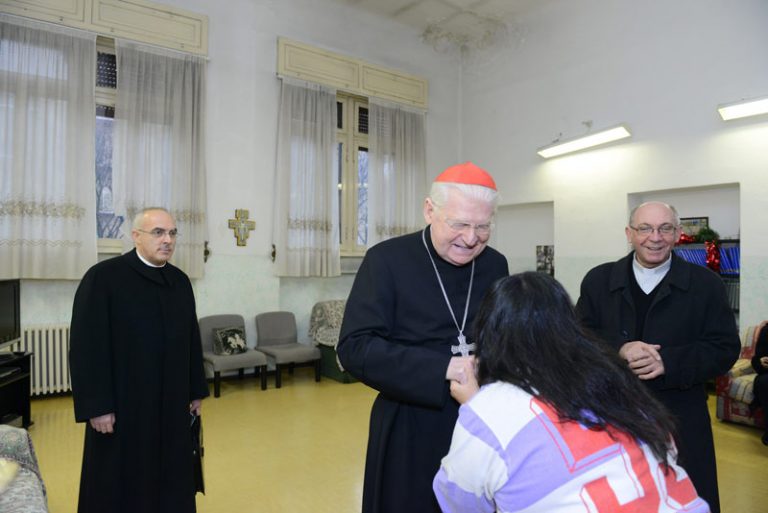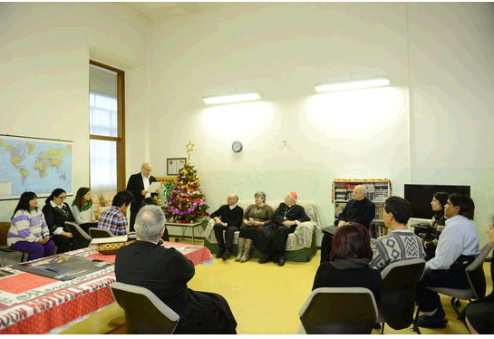 «Sono venuto per gli auguri di Natale, per portarvi l’annuncio della compagnia di Gesù bambino. Egli viene ad assicurarci che chiunque nasce è destinato a vivere per sempre. La malattia, con tutte le fatiche che comporta, è stata assunta per noi da Gesù e possono essere consegnate nelle sue mani. Vivendo la malattia in una famiglia, in una casa come questa che vi accoglie, tutto è più facile».