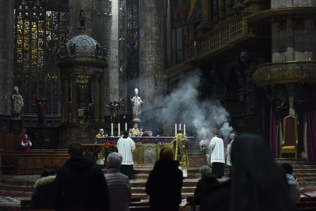 È la III Domenica dell’Avvento ambrosiano e la Messa che l’Arcivescovo presiede in Duomo si apre con il richiamo all’entrata in vigore, appunto, delle modifiche della III edizione del Messale romano. Una Celebrazione che avrebbe dovuto essere diversa, con le rappresentanze di tutte le corali invitate a partecipare. Ma, ovviamente – nemmeno in una seconda organizzazione più ridotta nei numeri – è stato possibile e, allora, il vescovo Mario aggiunge: «Immaginavo che questa sera il Duomo sarebbe stato pieno di tutte le corali a cui desideravo esprimere la mia gratitudine e il mio incoraggiamento per il servizio che rendono alle comunità parrocchiali».