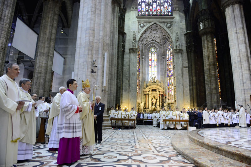 «Troppo spesso – ha rilevato Scola durante l’omelia – viviamo dimentichi del preziosissimo contenuto del sacrificio compiuto una volta per tutte, e perdiamo il prezioso quotidiano valore del “per sempre”, del carattere definitivo di quanto Gesù ha operato in favor nostro. Viviamo come se la redenzione dovesse ancora accadere! Come se il Figlio di Dio non avesse già caricato su di Sé tutto il peccato del mondo e il combattimento non fosse ancora deciso! Non è assolutamente così!».